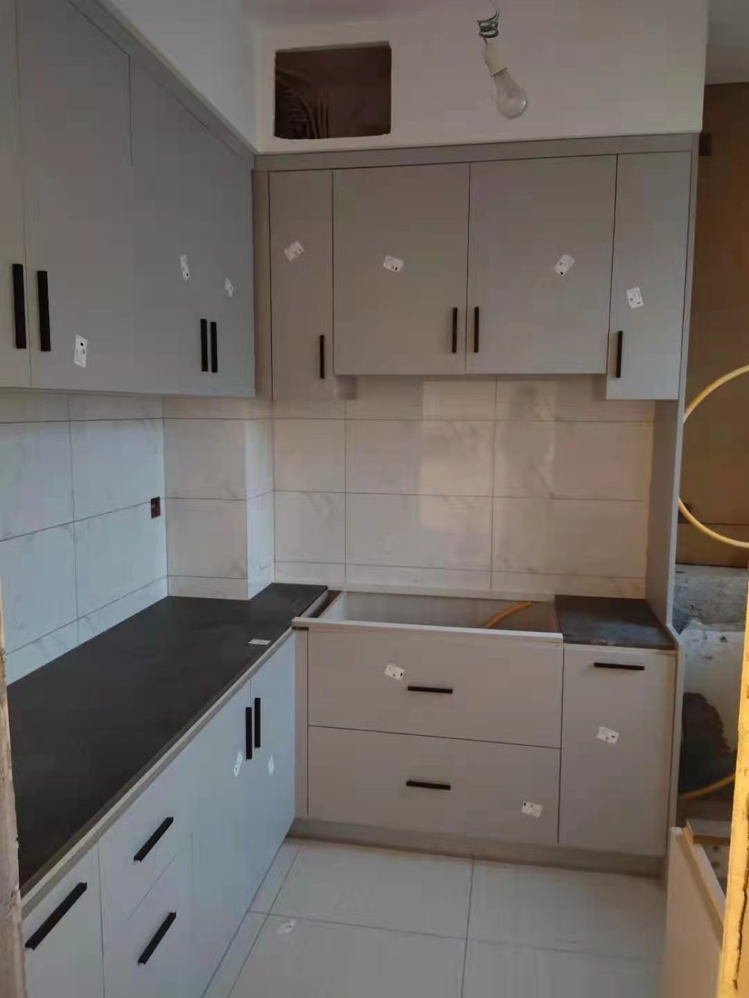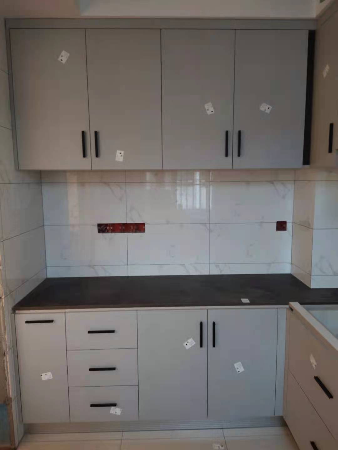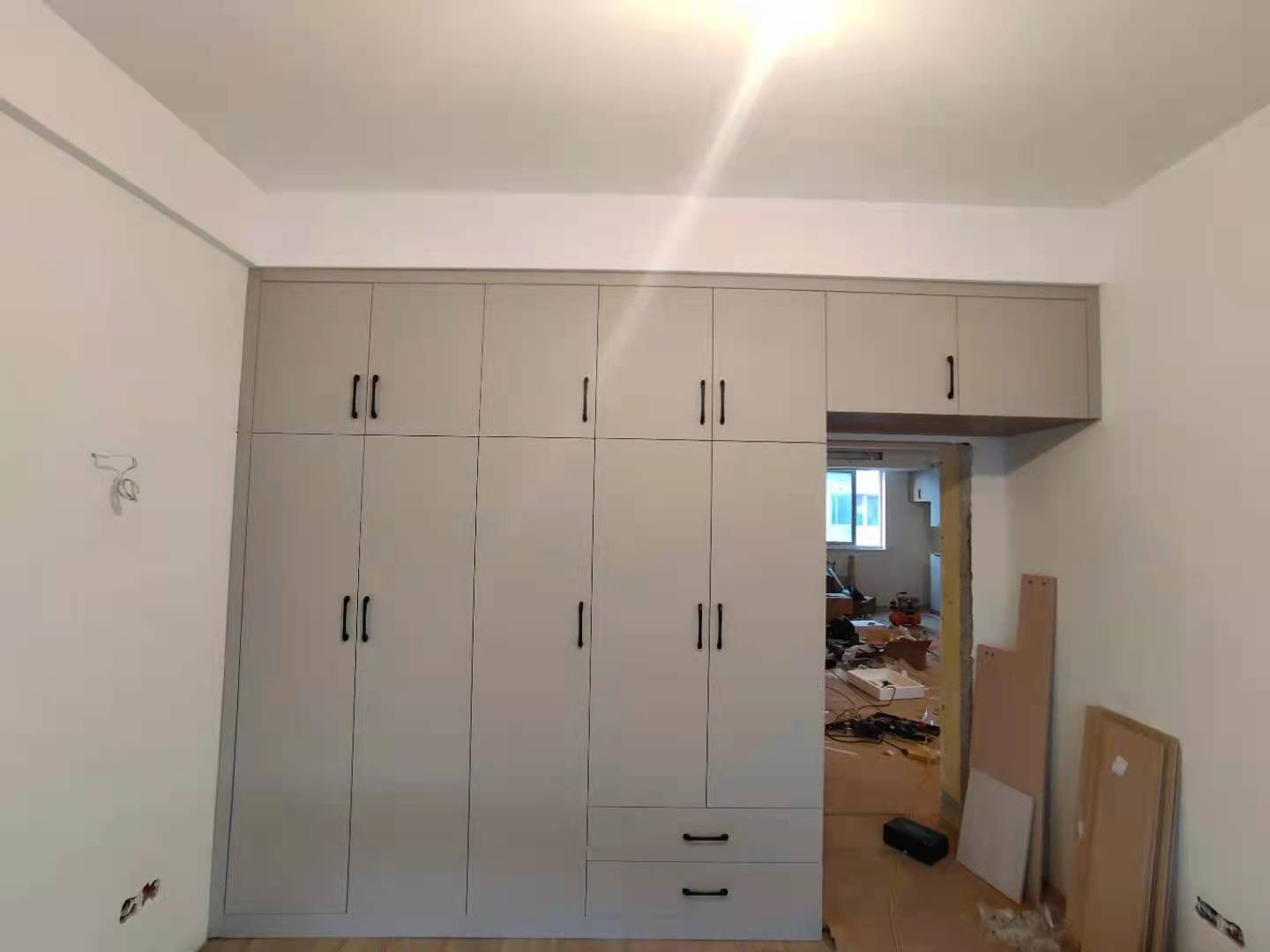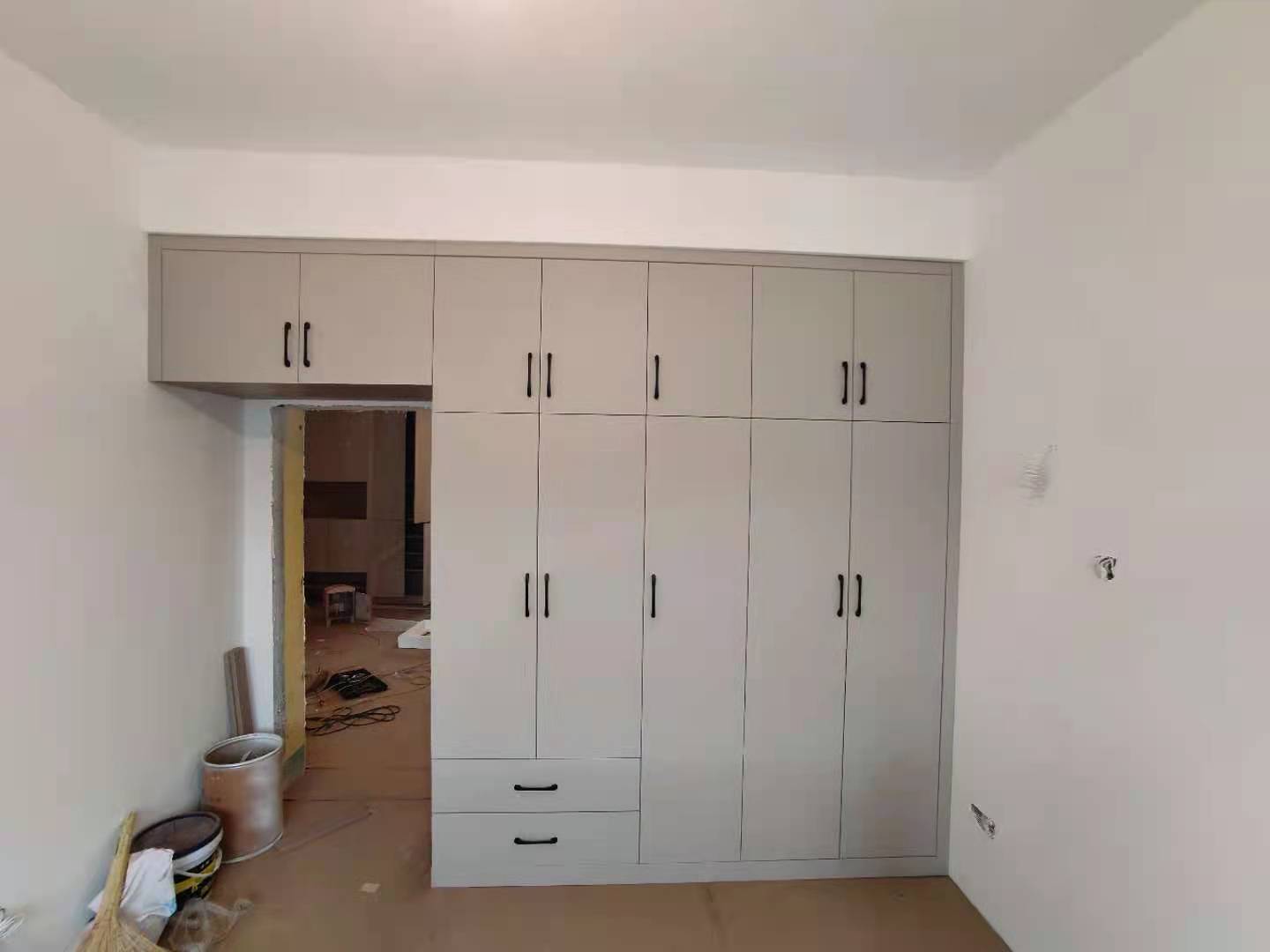 安裝完成的柜子都用塑料膜保護(hù)起來了