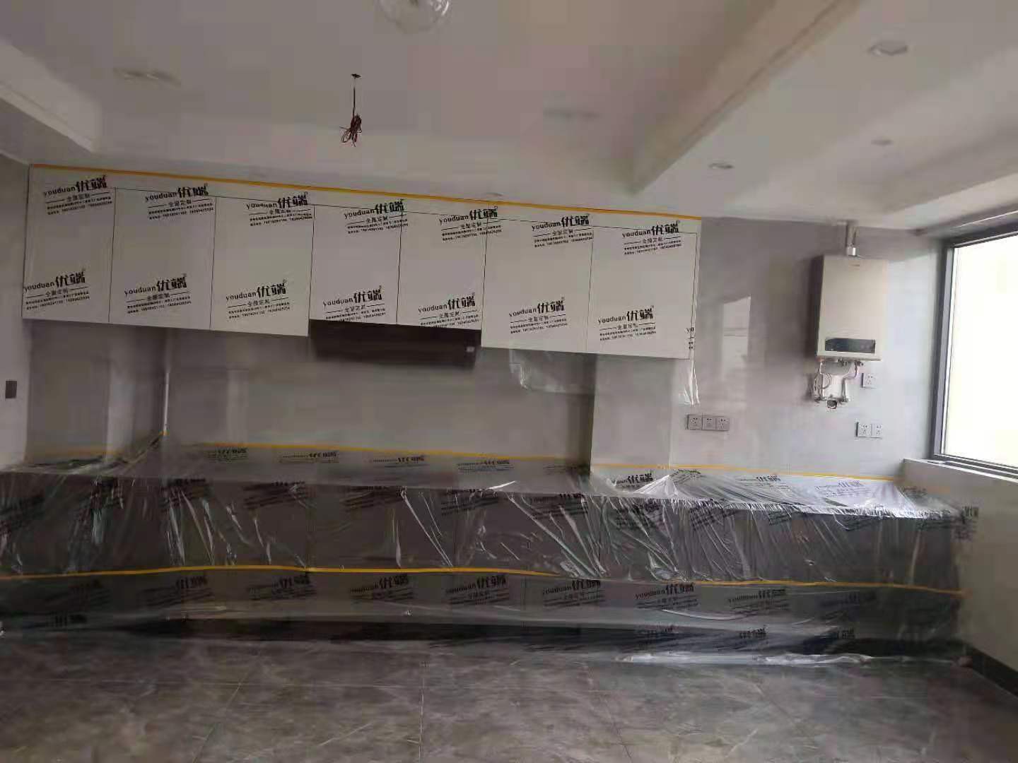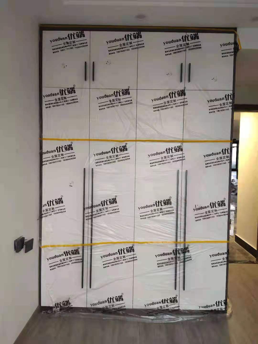 我們的柜子都用塑料膜保護(hù)起來了