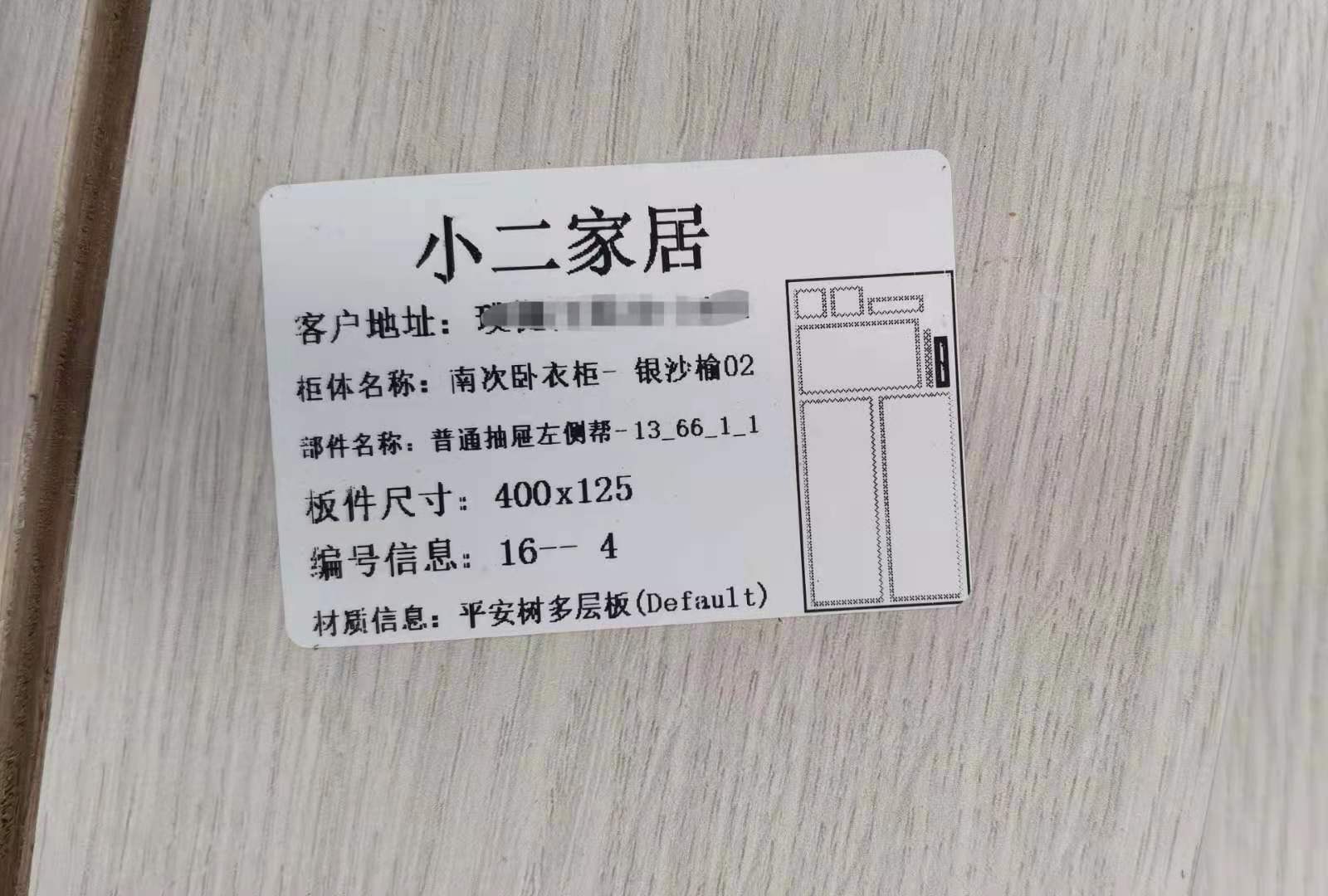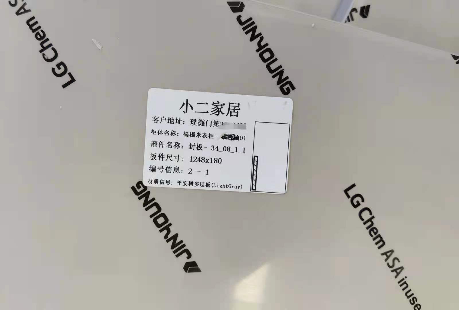 我家不管大小板都是四面封邊哦!每塊板上都貼有小標(biāo)簽,方便后期安裝師傅安裝。