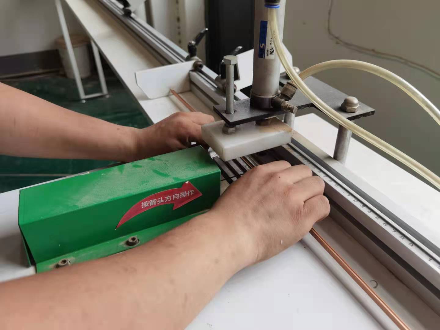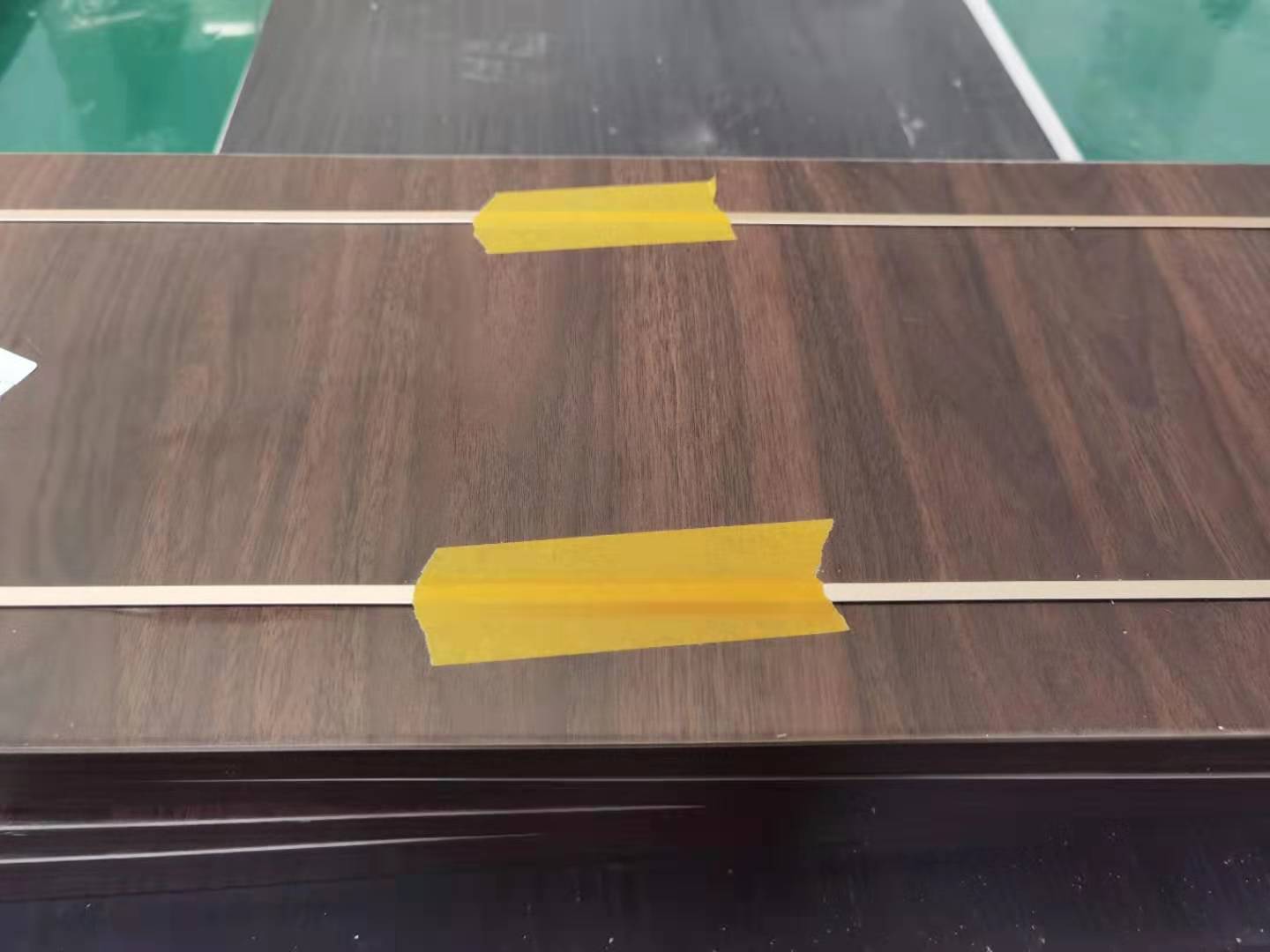 開槽-槽里打膠-金屬條裁剪-鑲嵌好-最后膠帶紙?jiān)诠潭?/span>