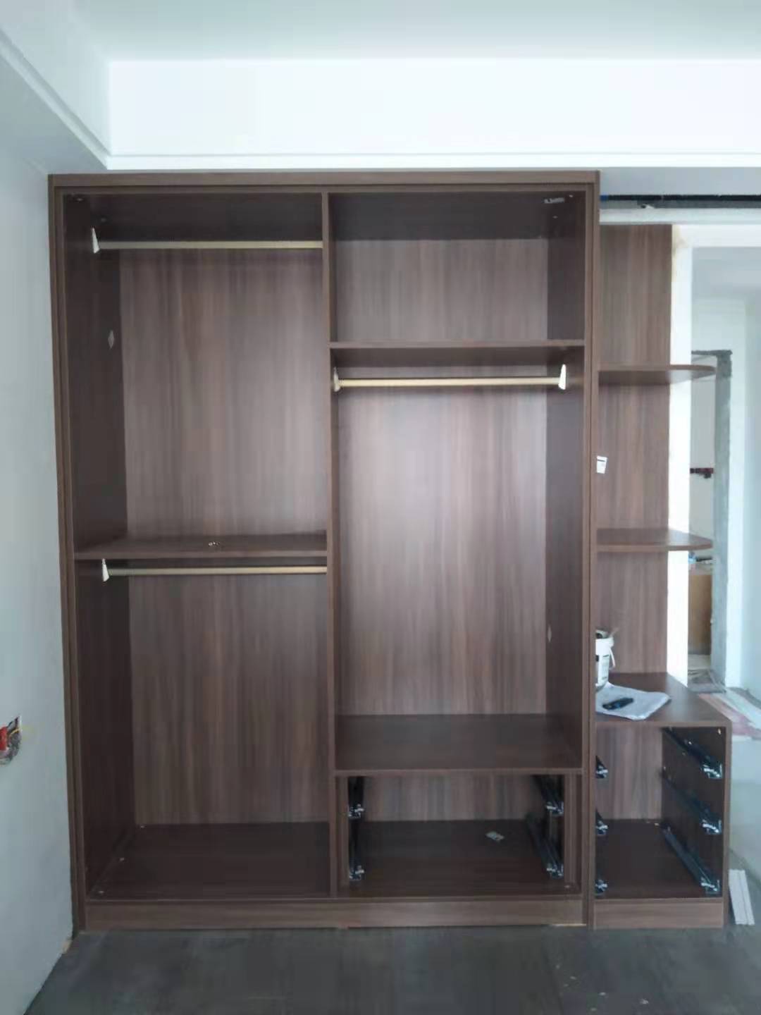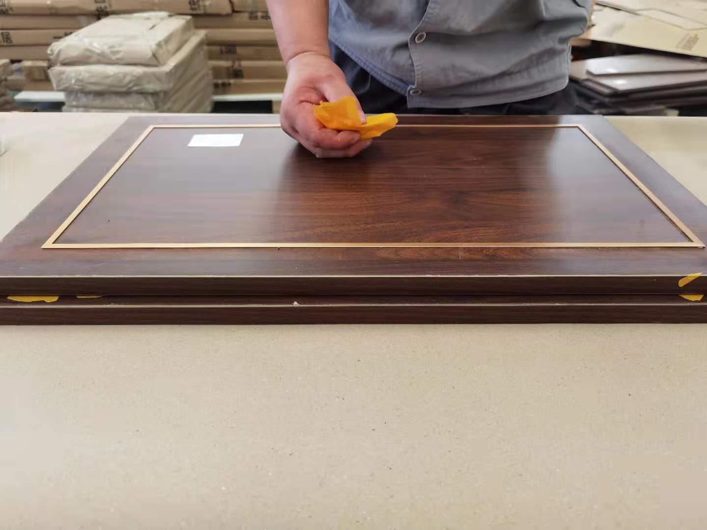 柜門師傅會用柏油清洗劑全部擦拭一遍,以保證裝到客戶家整潔美觀。