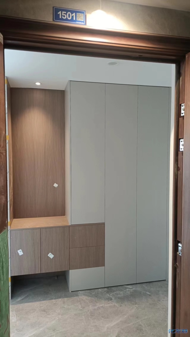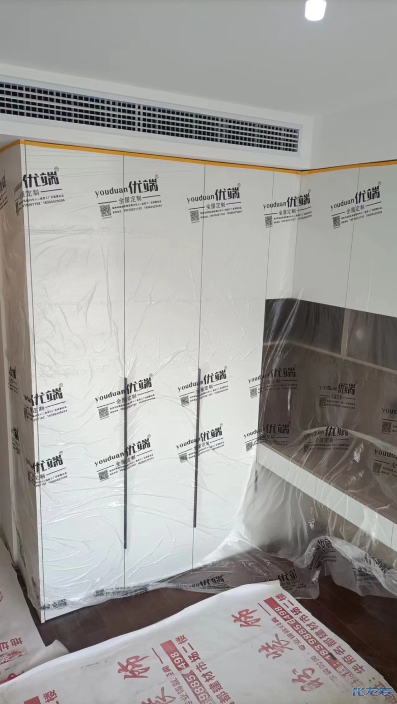 安裝完成的柜子都用塑料膜保護(hù)起來了