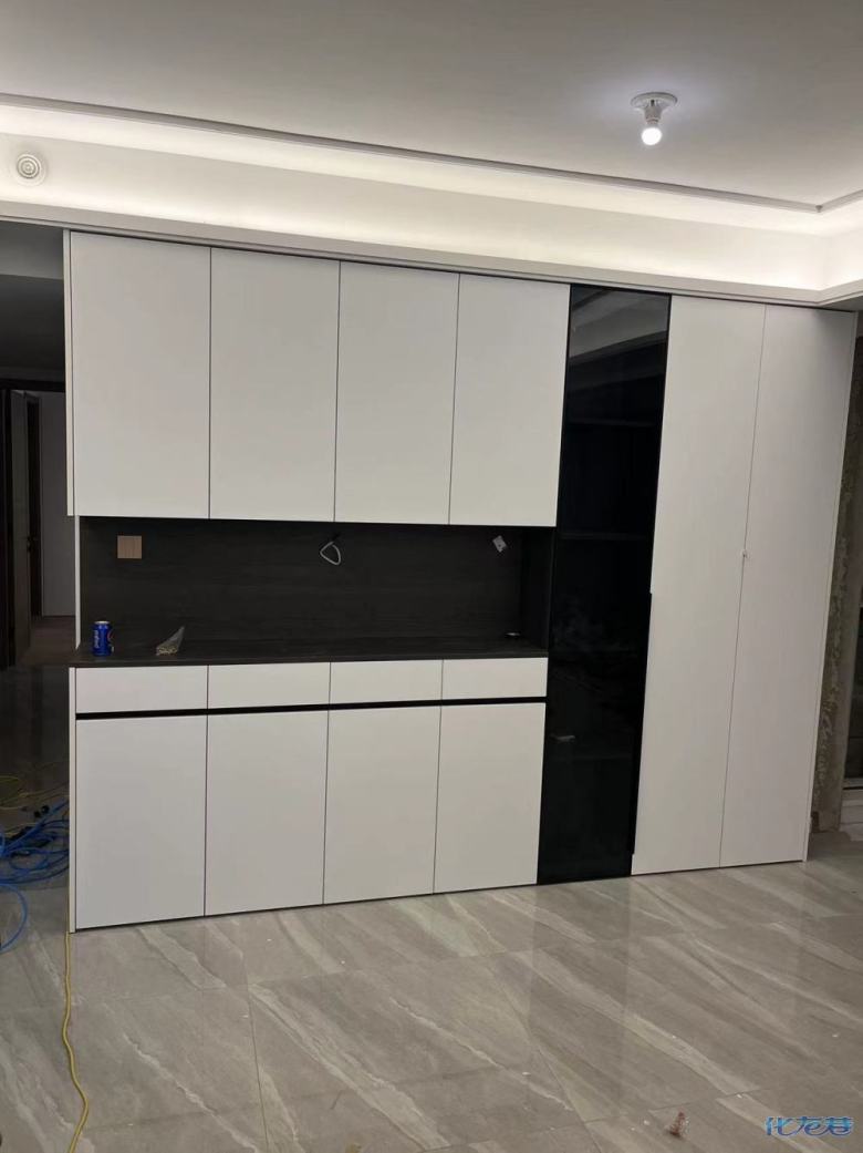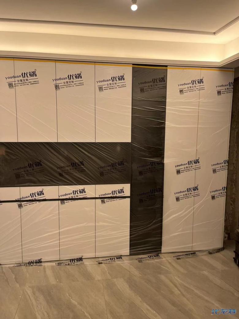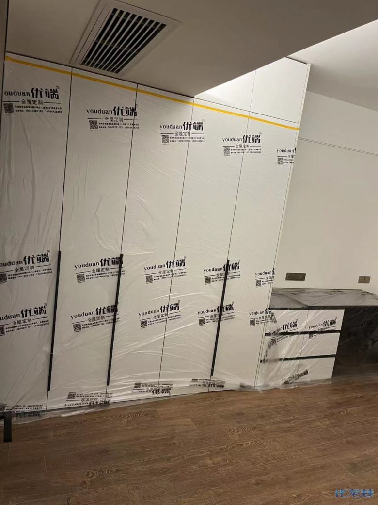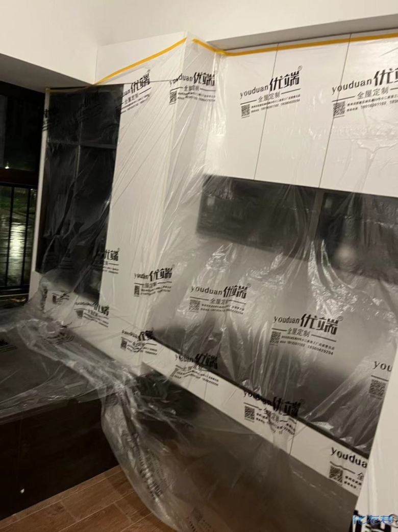 安裝完成的柜子都用塑料膜保護(hù)起來(lái)了