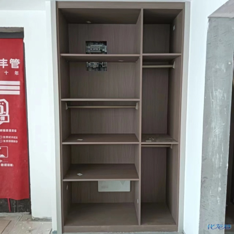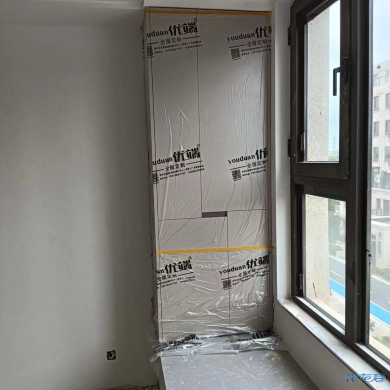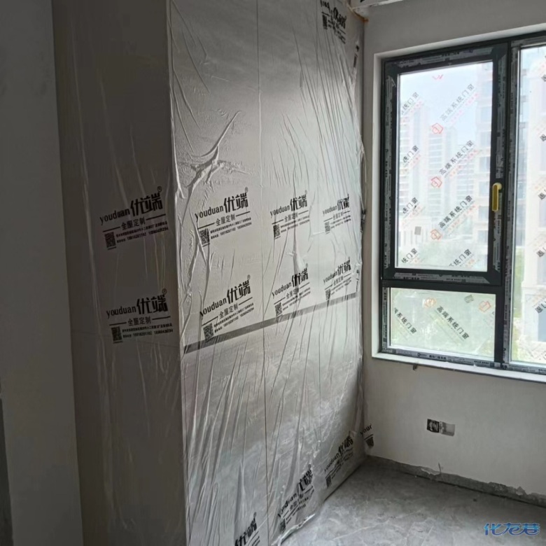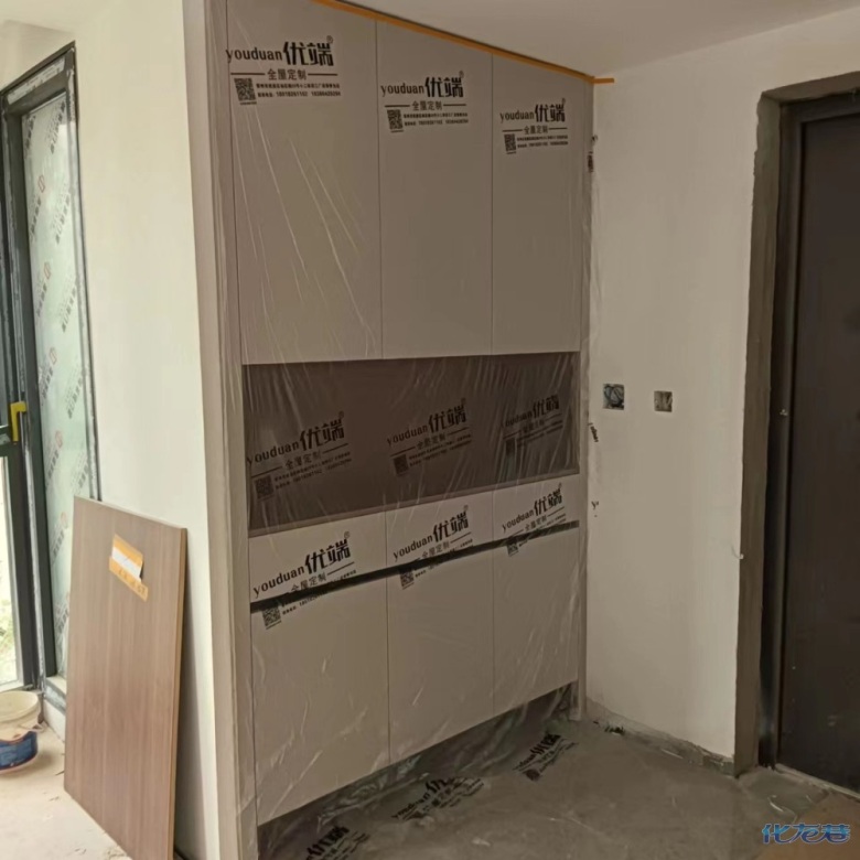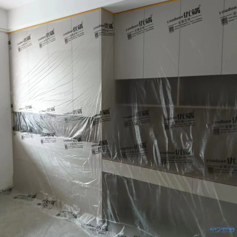 安裝完成的柜子都用塑料膜保護(hù)起來了