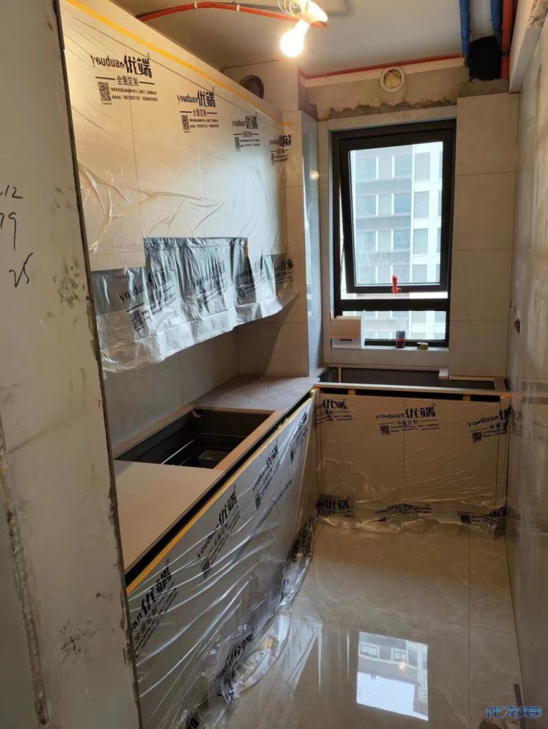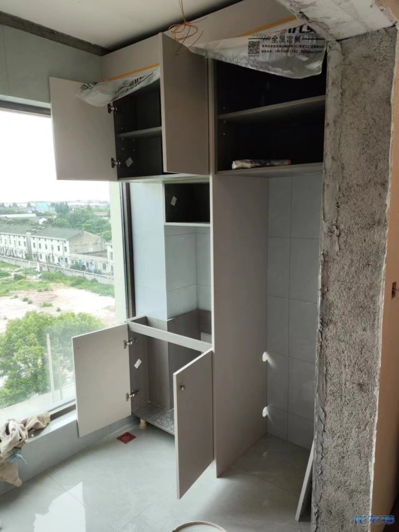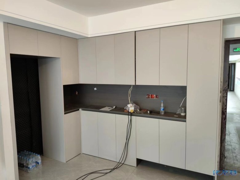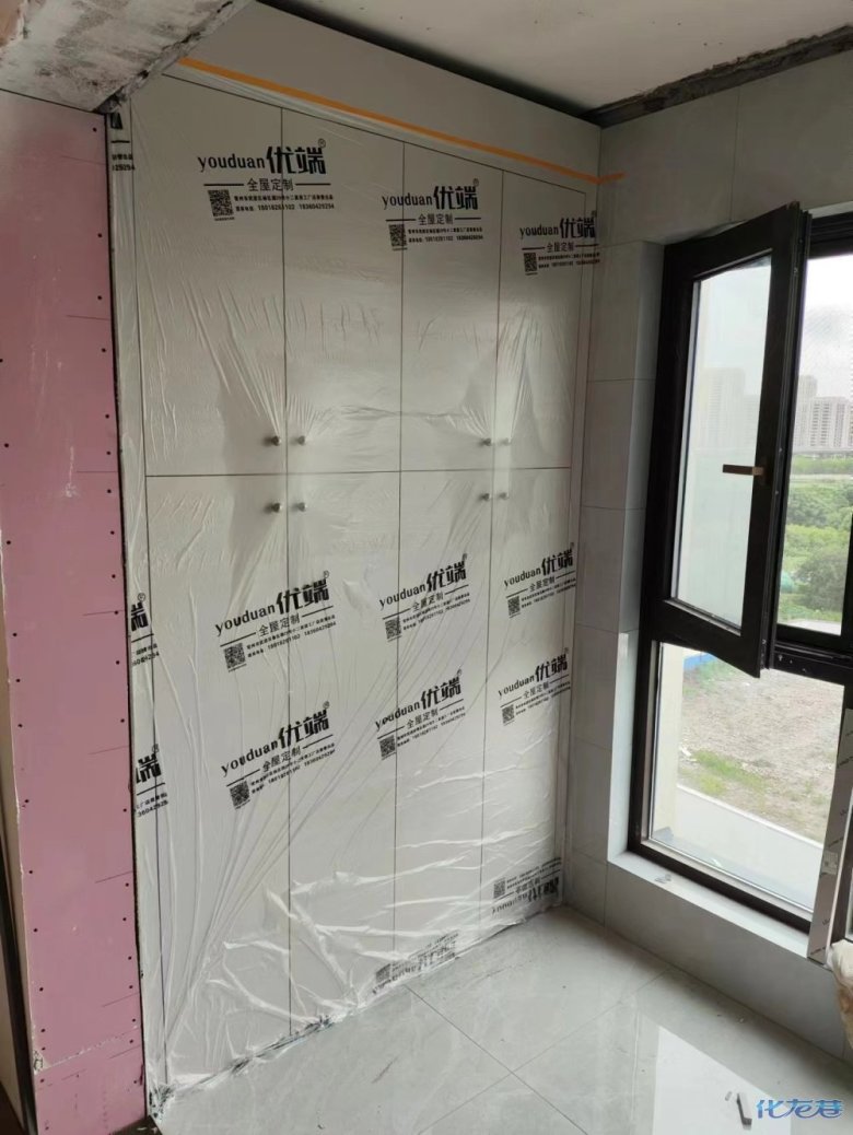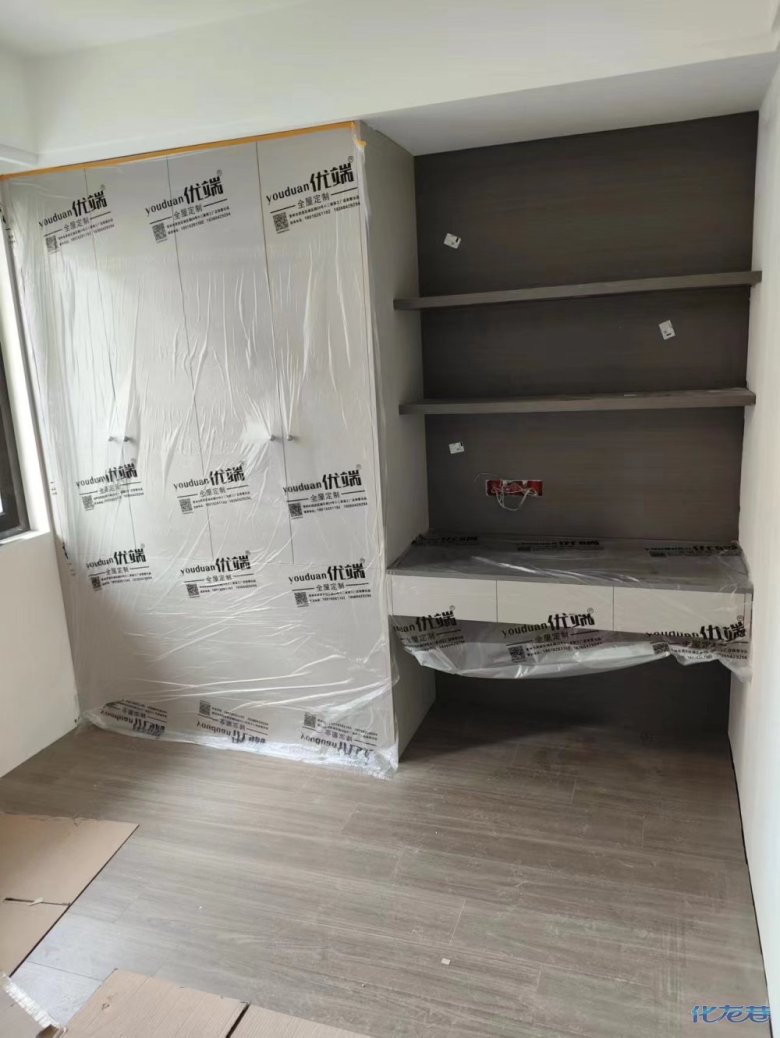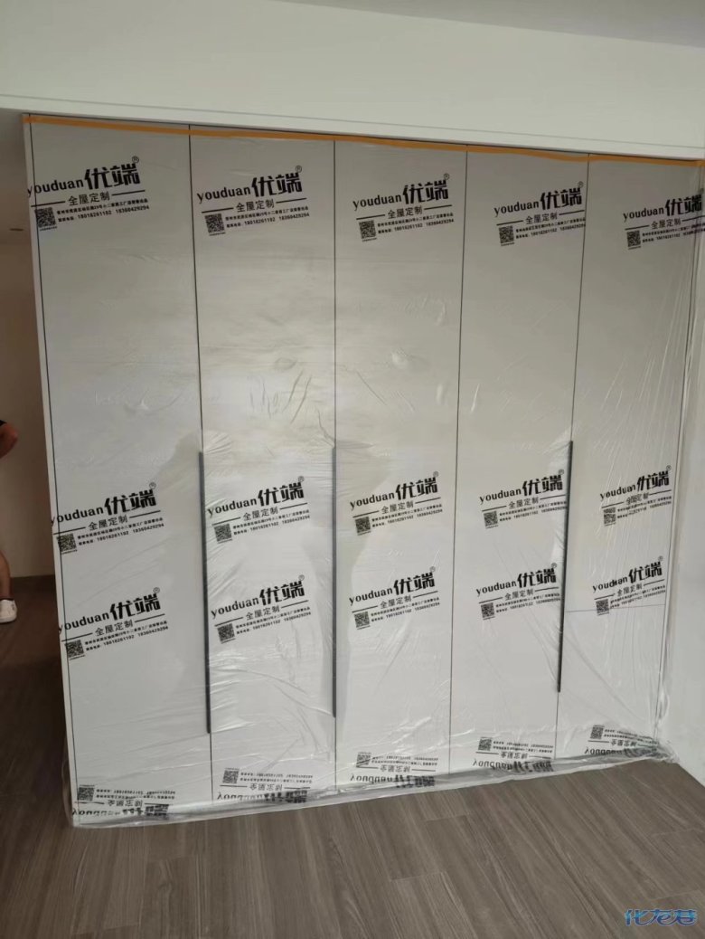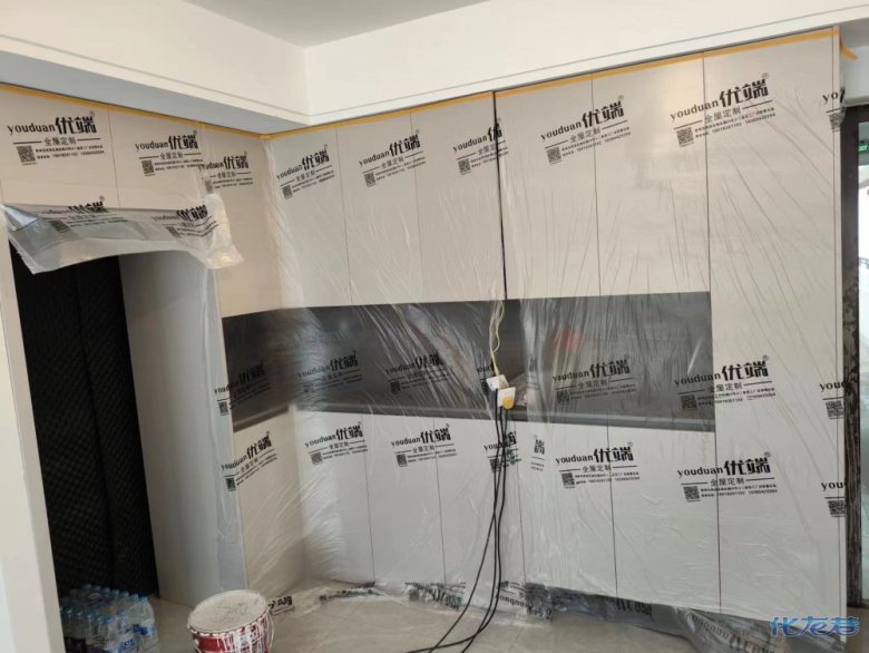 安裝完成的柜子都用塑料膜保護(hù)起來了