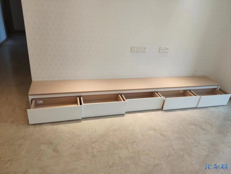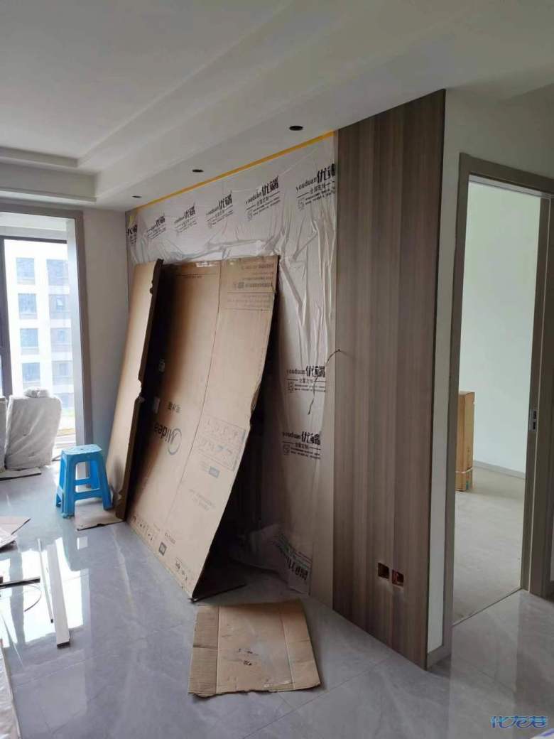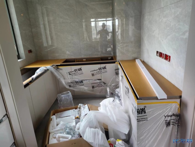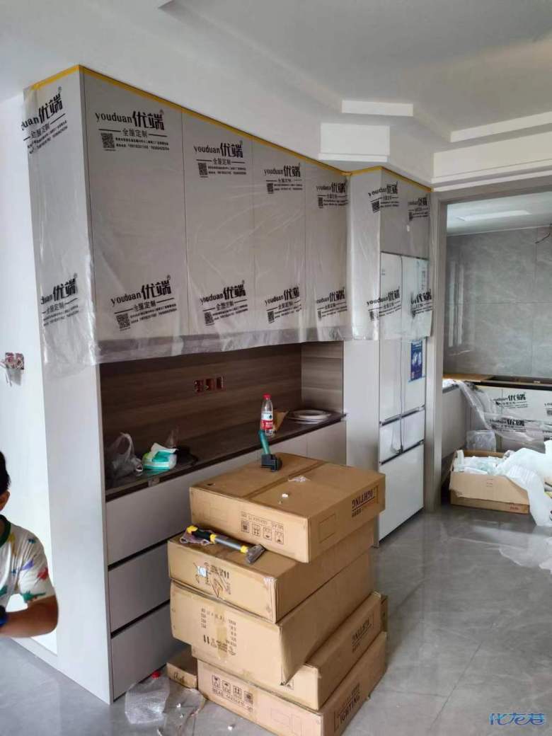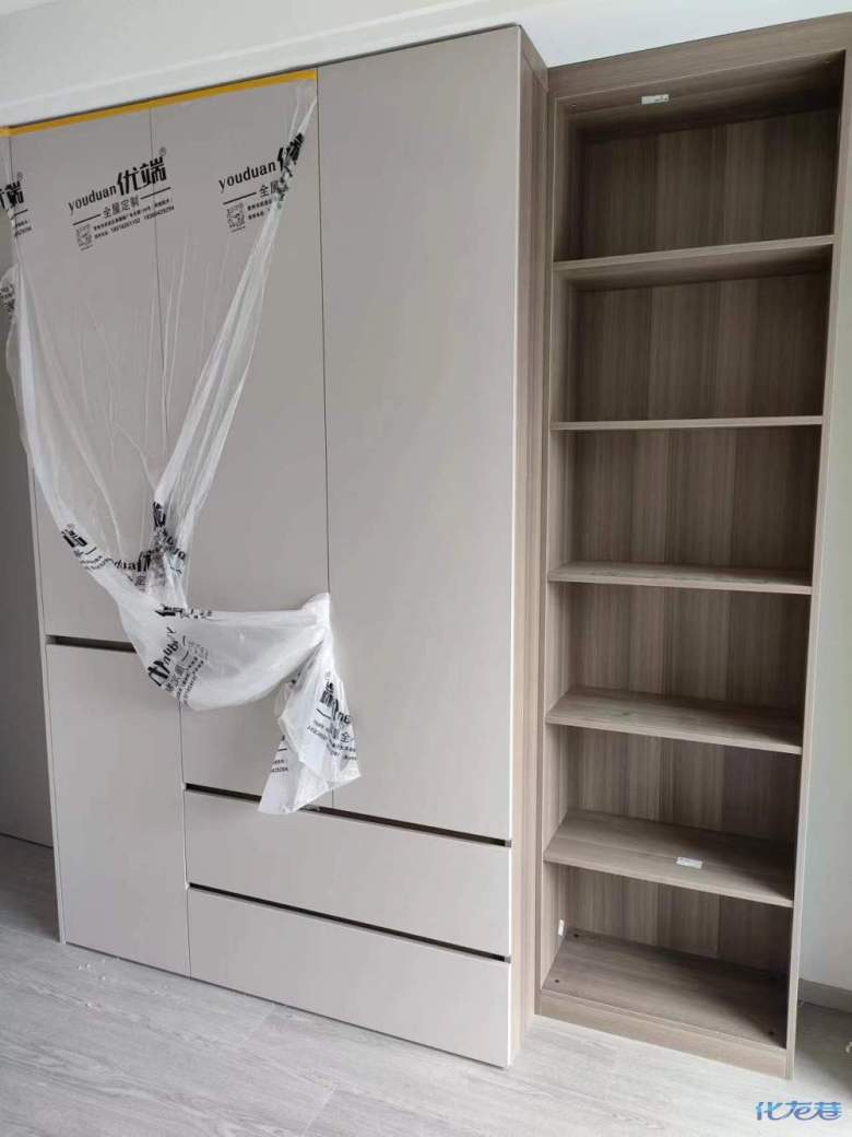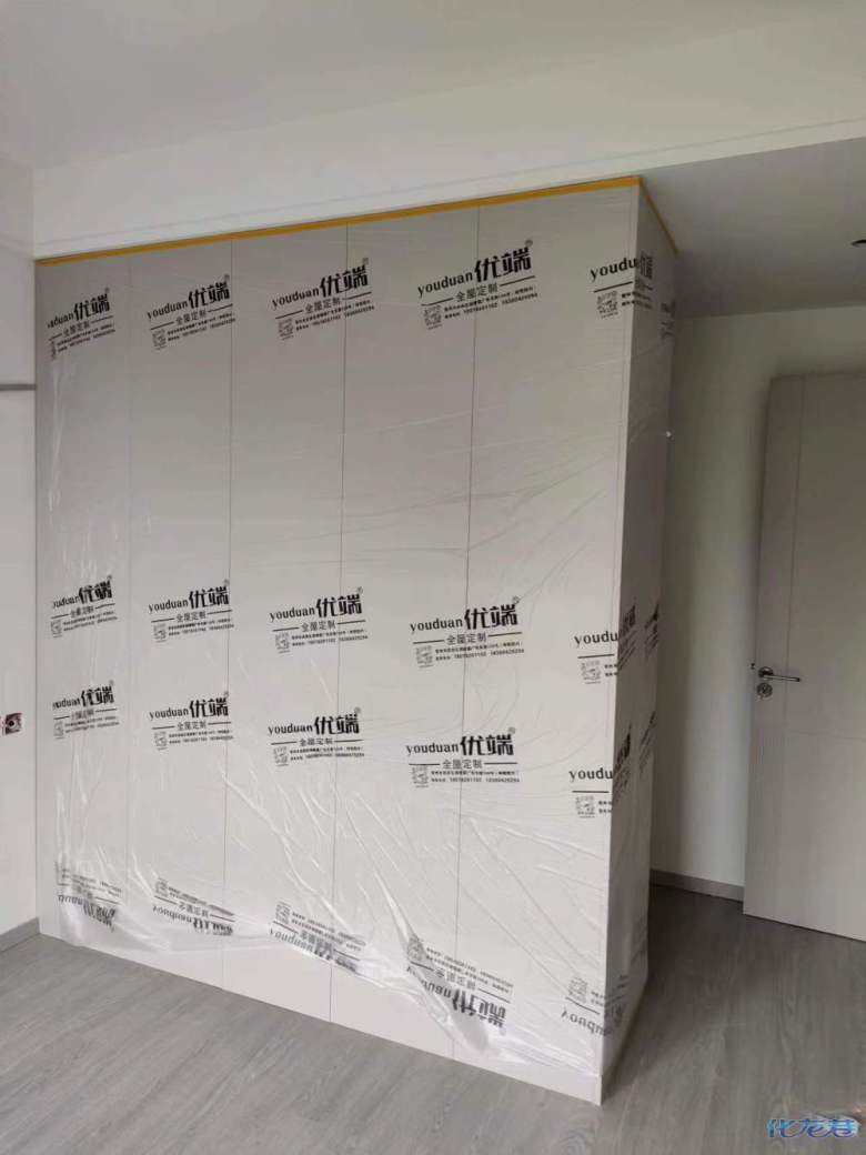 安裝完成的柜子都用塑料膜保護(hù)起來了