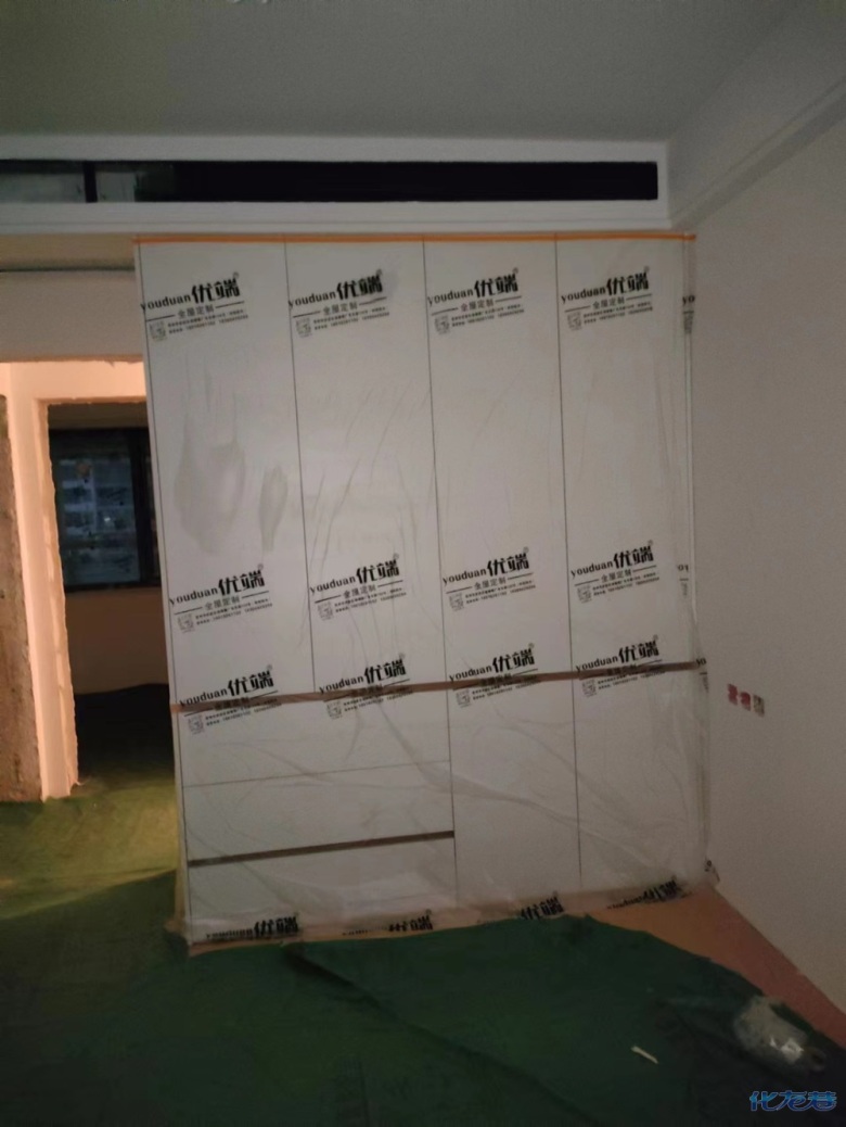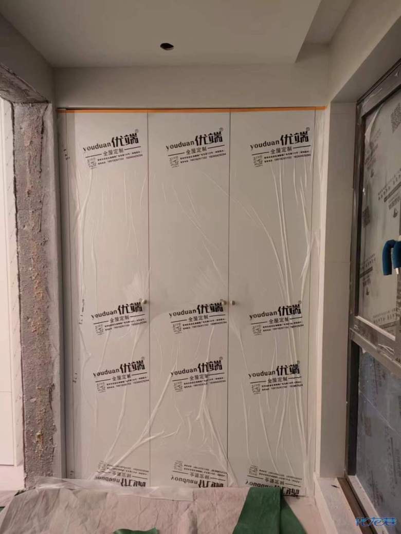 安裝完畢,安裝完成的柜子都用塑料膜保護起來了