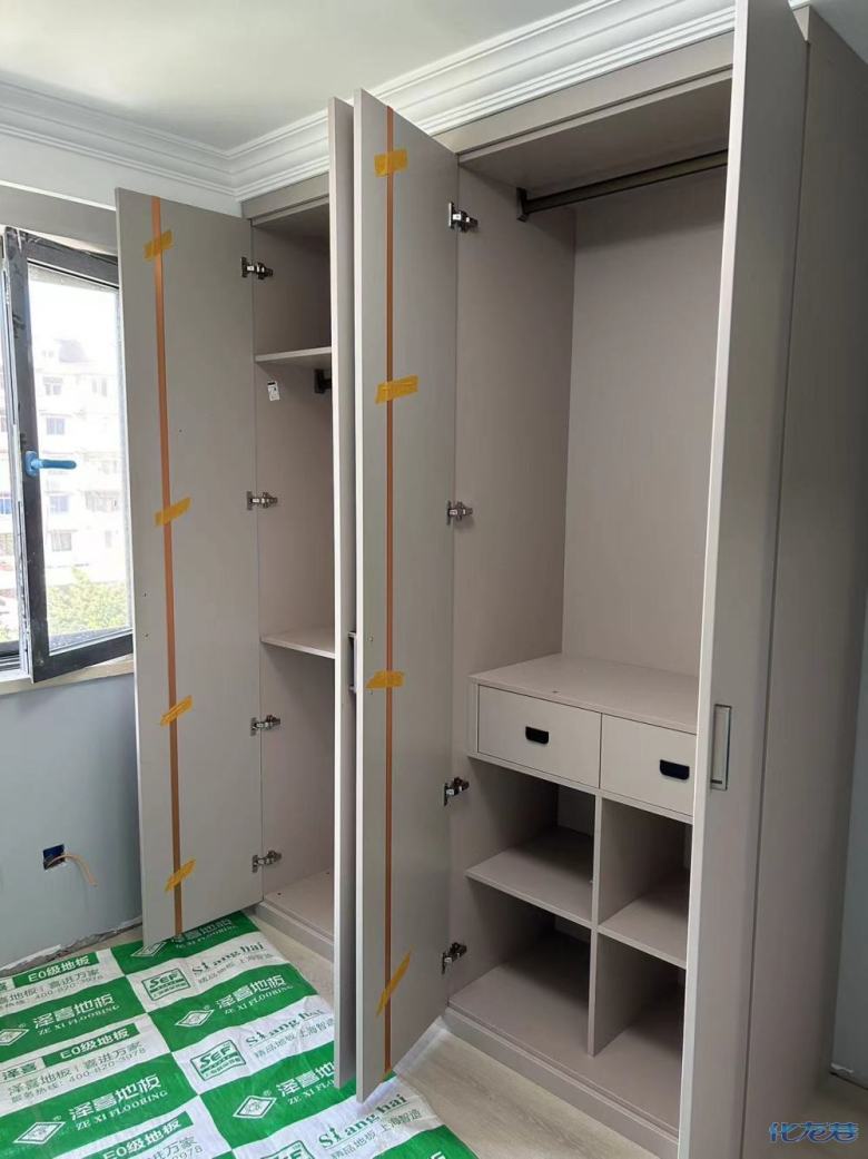 安裝完畢,高顏值的柜子當(dāng)然要搭配高品質(zhì)的五金啦:海蒂詩(shī)導(dǎo)軌,反彈器,ABS尼龍柜腳,索菲亞掛衣架等,做完的柜子效果很好,顏值非常高!