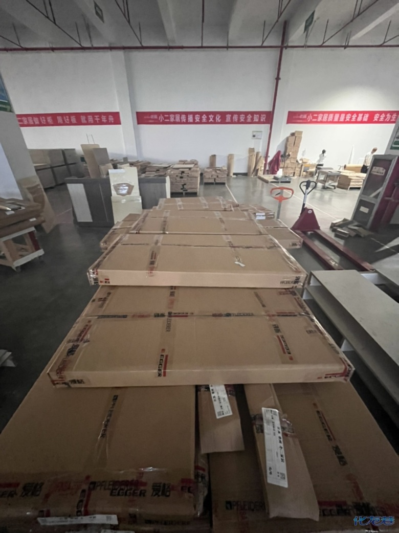 進入打包環(huán)節(jié),我家柜子每塊板都是整個打包起來的,以防運輸過程中劃傷或者磕碰到,全部打包好就可以聯系客戶送貨咯!