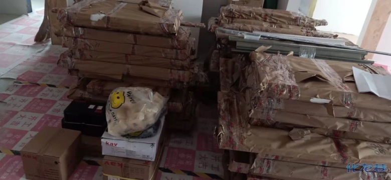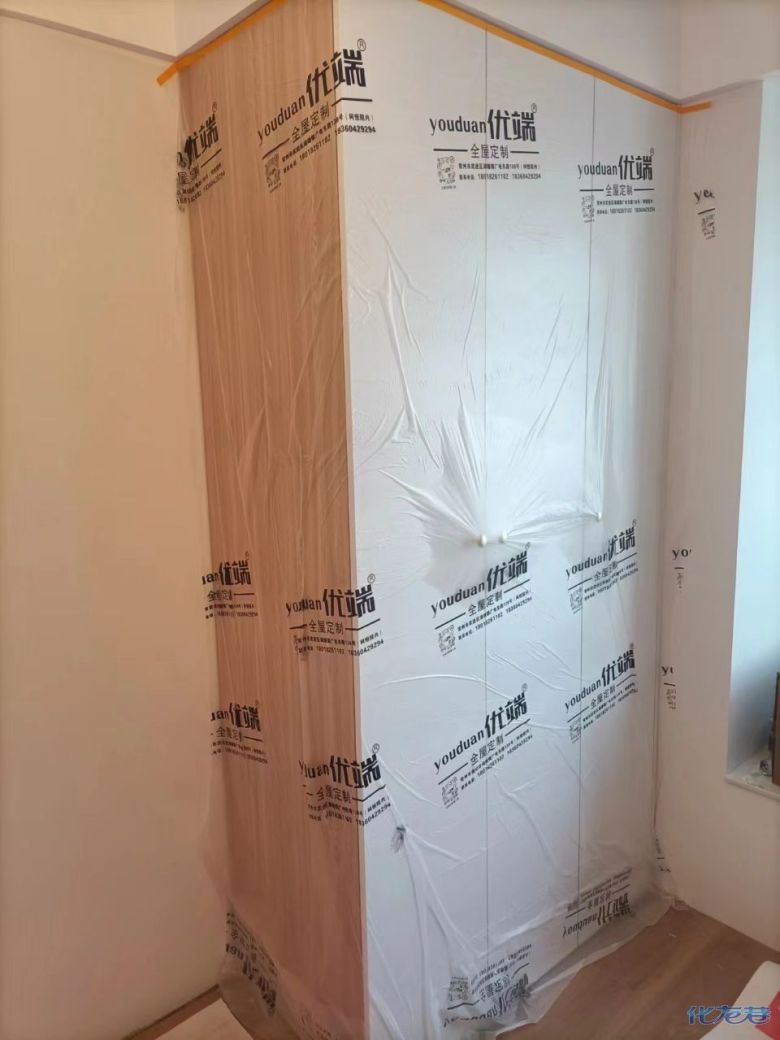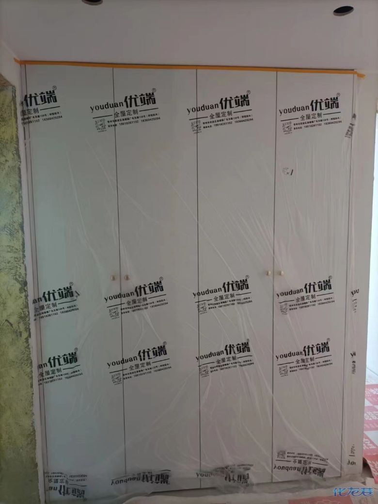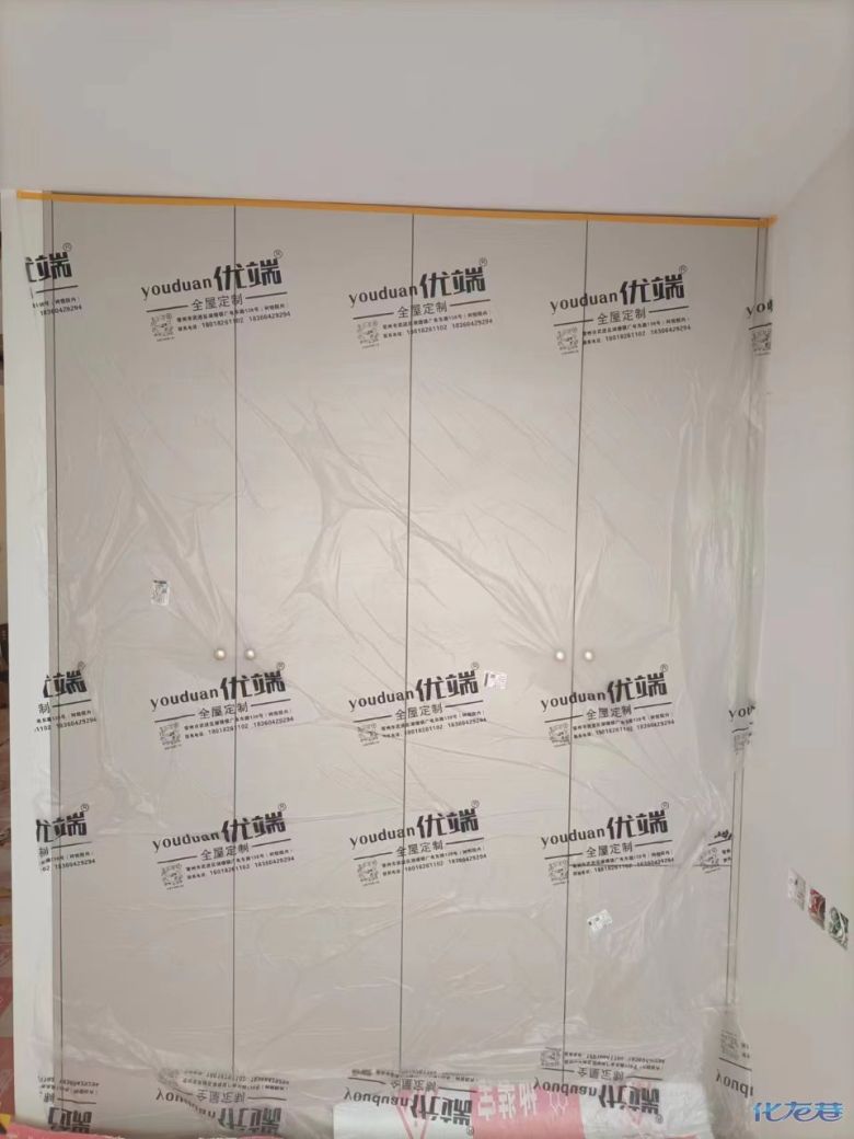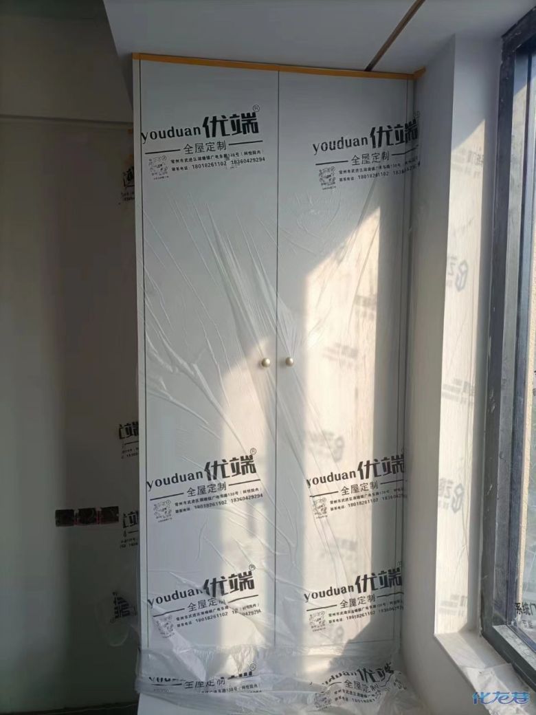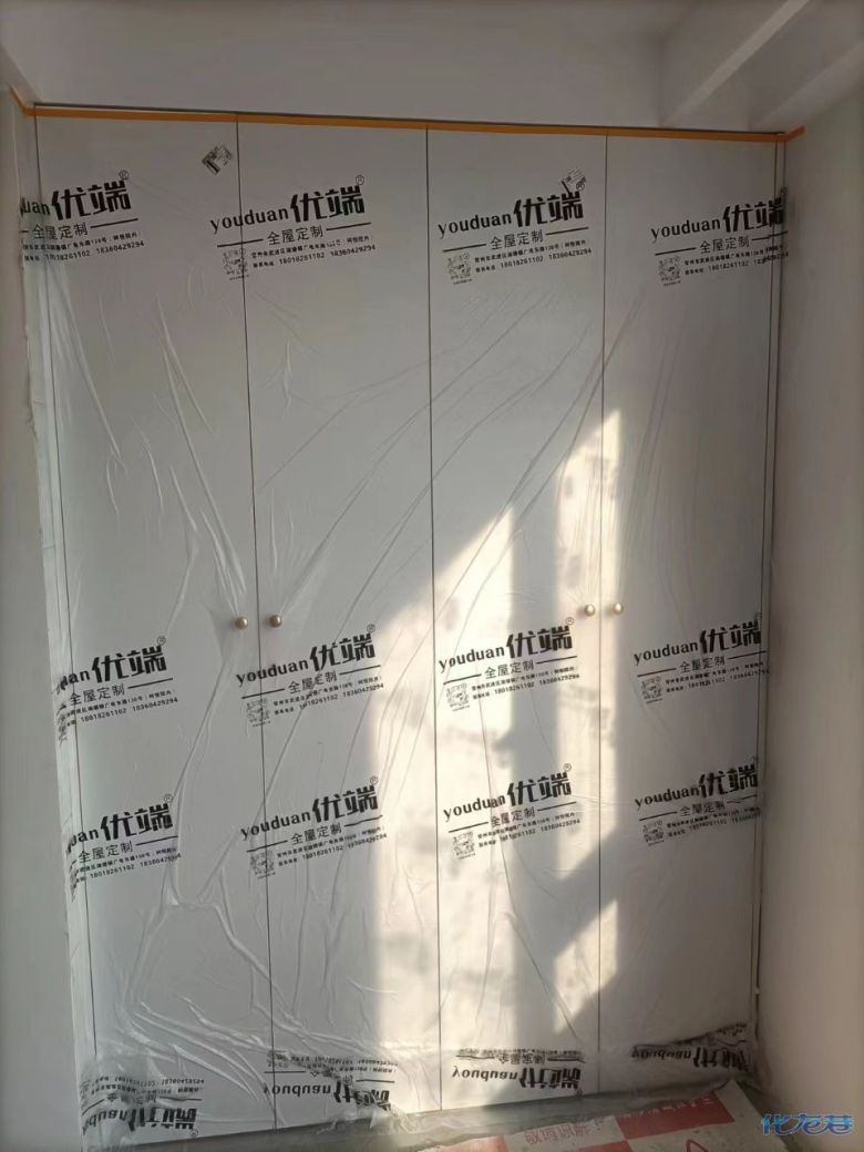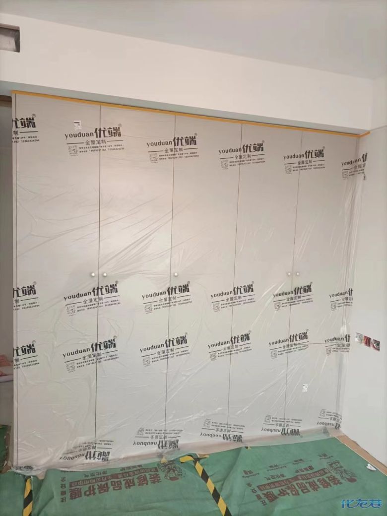 安裝完成的柜子都用塑料膜保護(hù)起來了