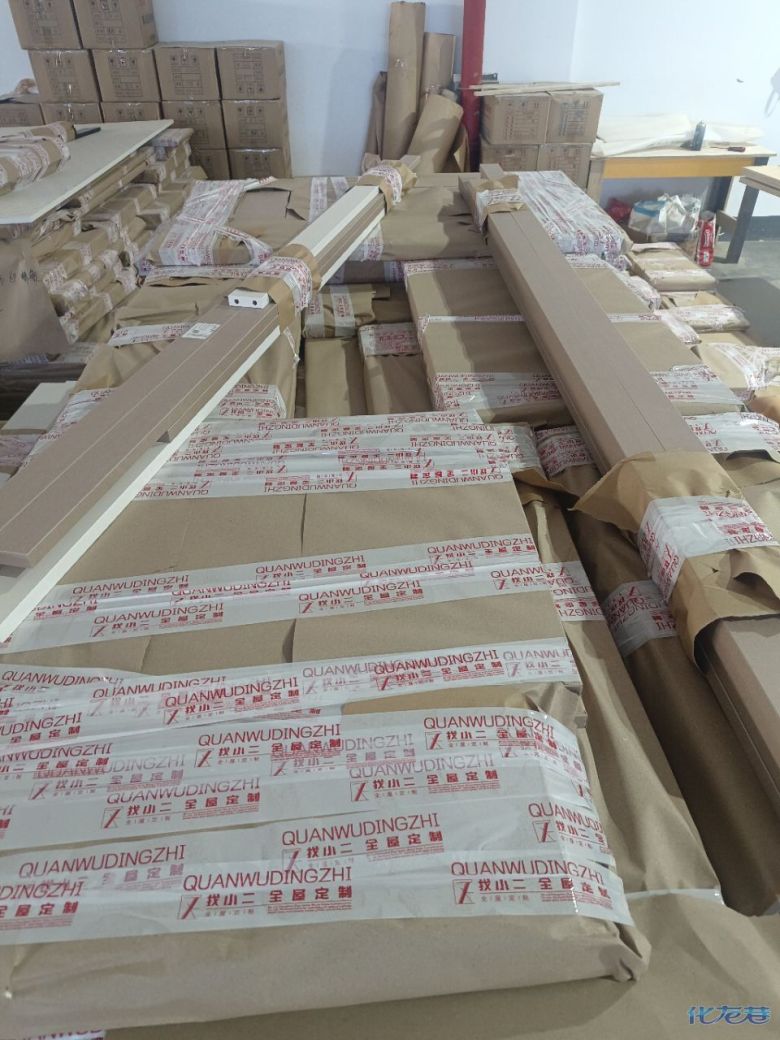進(jìn)入打包環(huán)節(jié),我家柜子每塊板都是整個(gè)打包起來的,以防運(yùn)輸過程中劃傷或者磕碰到,跟板材下面墊板一個(gè)原理哦!重新訂板會(huì)存在色差,這是重點(diǎn),圈起來必考。全部打包好就可以聯(lián)系客戶送貨咯!