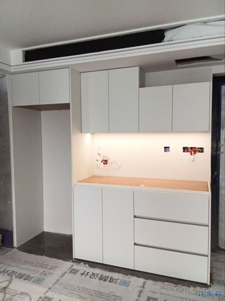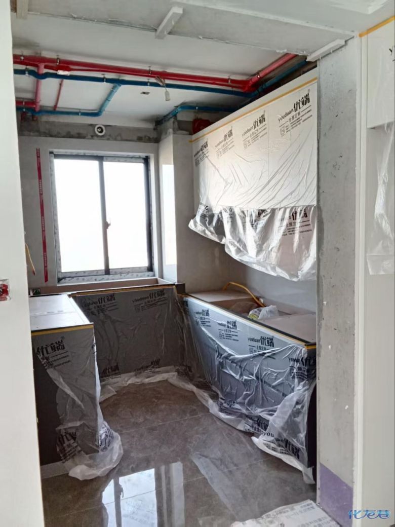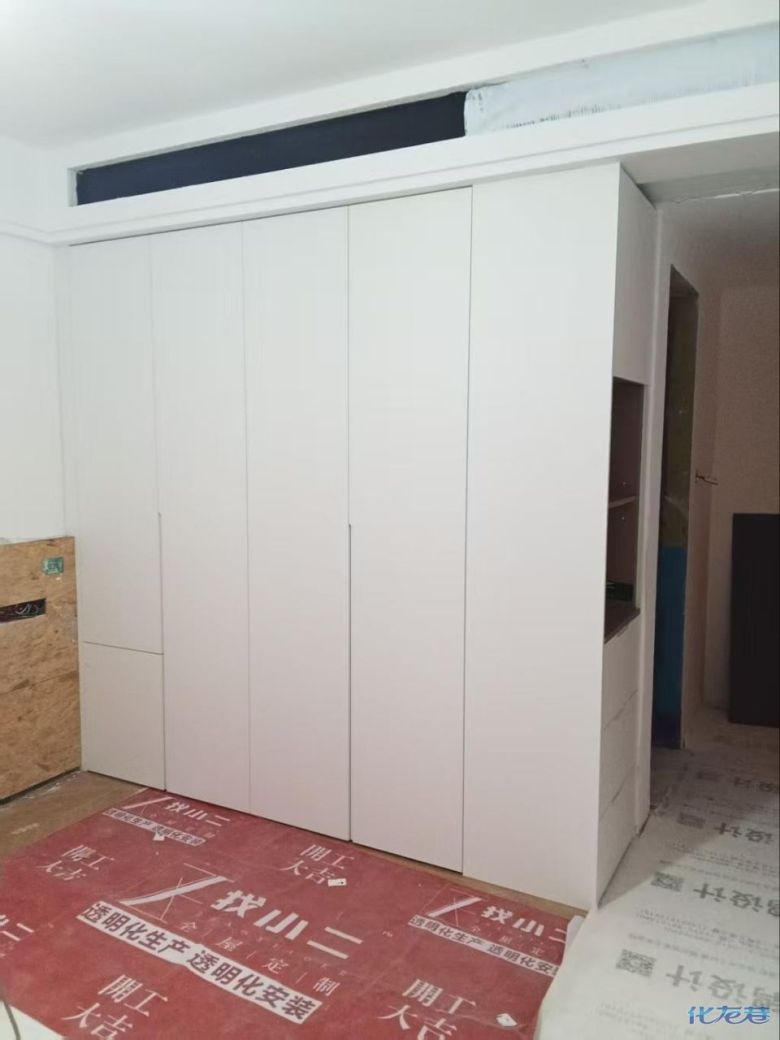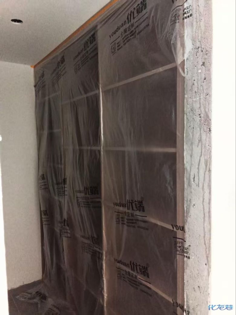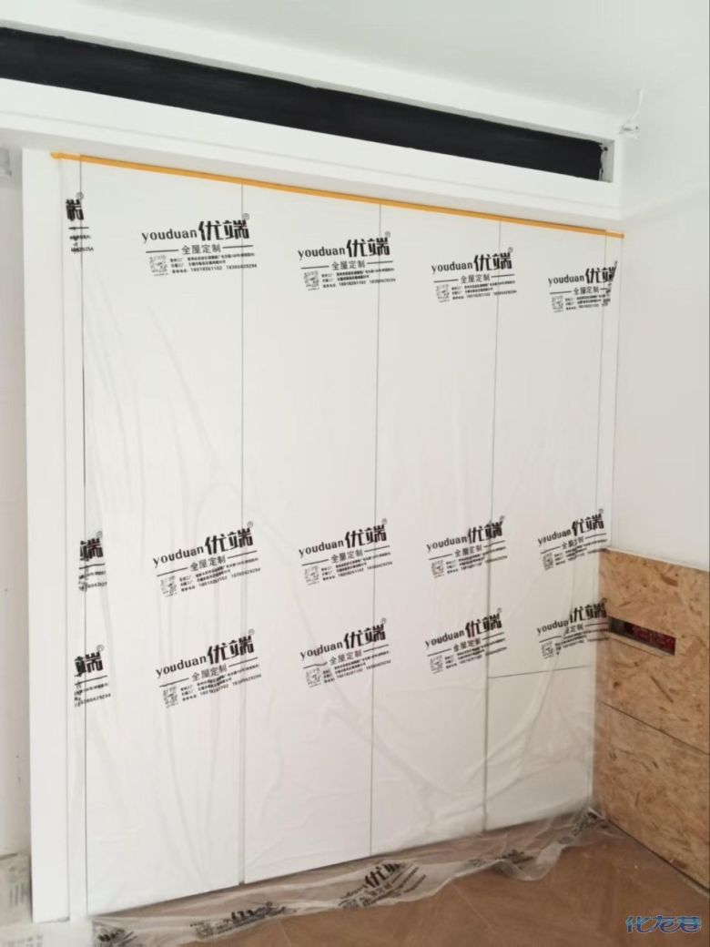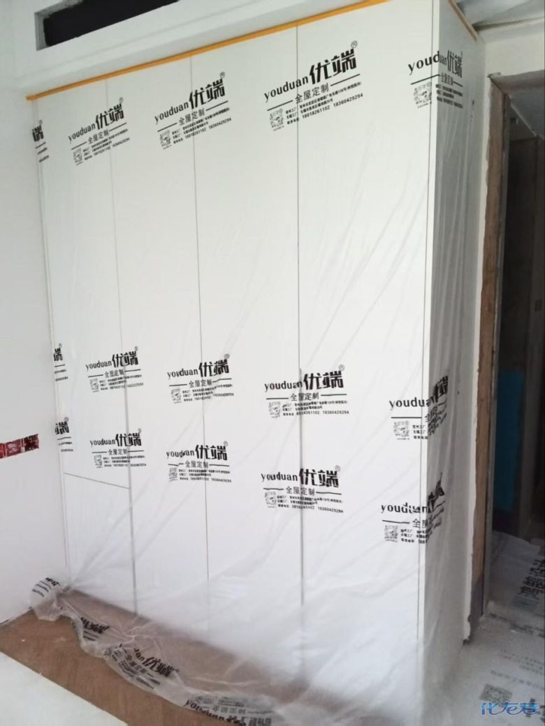 安裝完成的柜子都用塑料膜保護起來了