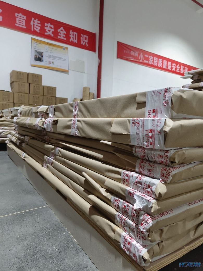 進(jìn)入打包環(huán)節(jié),我家柜子每塊板都是整個(gè)打包起來的,以防運(yùn)輸過程中劃傷或者磕碰到,跟板材下面墊板一個(gè)原理哦!重新訂板會(huì)存在色差,這是重點(diǎn),圈起來必考。全部打包好就可以聯(lián)系客戶送貨咯!