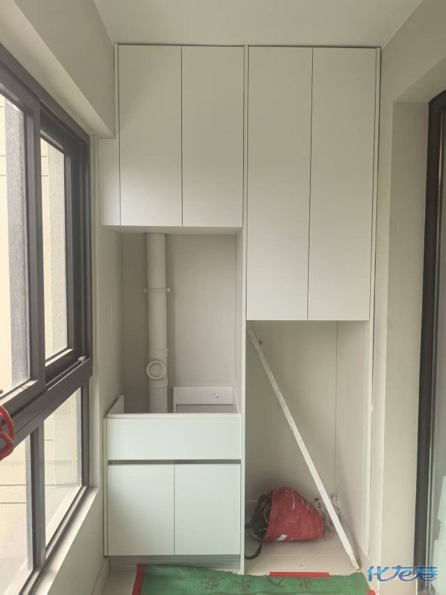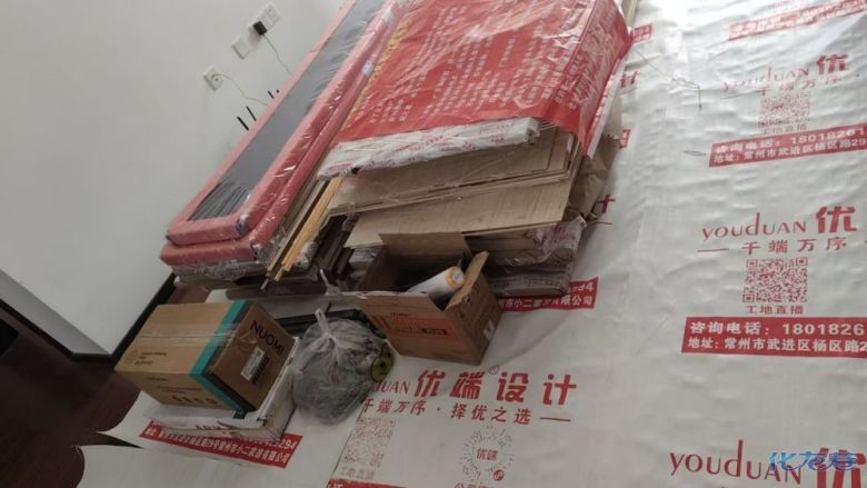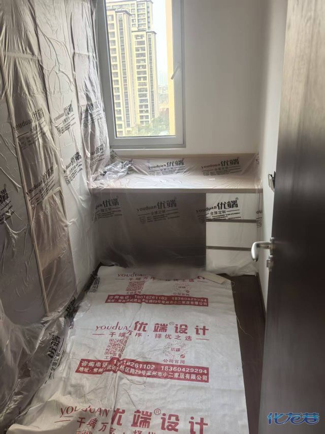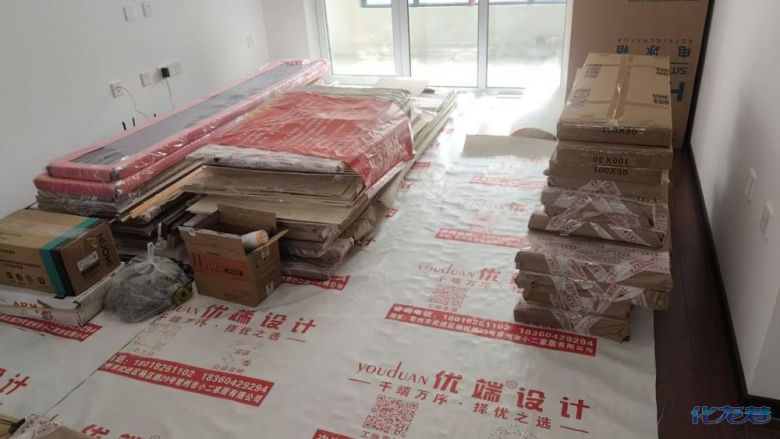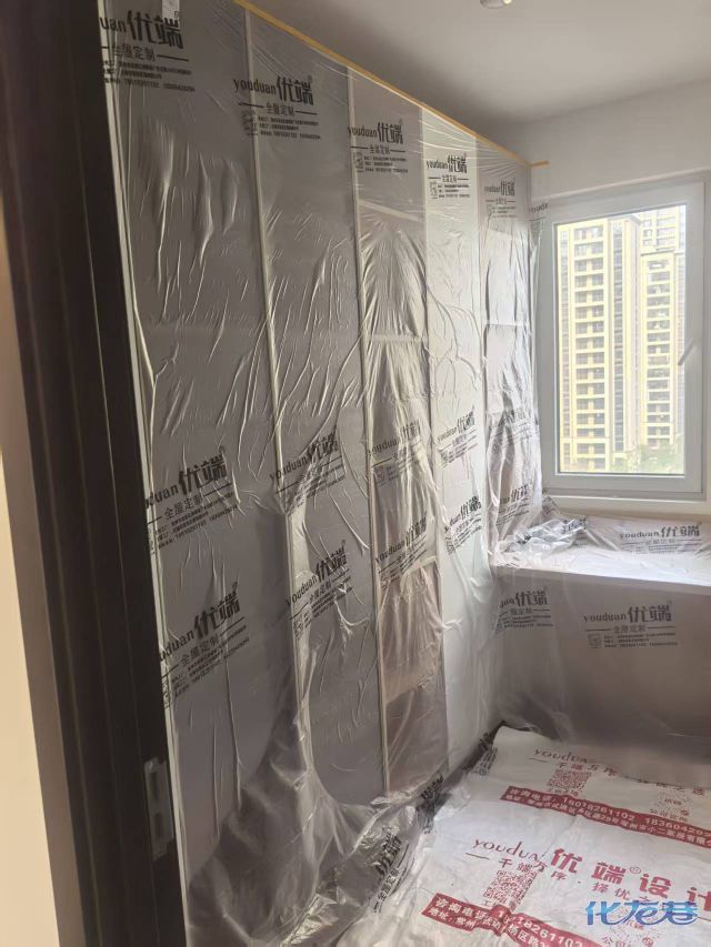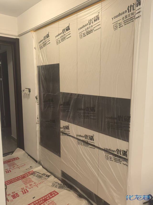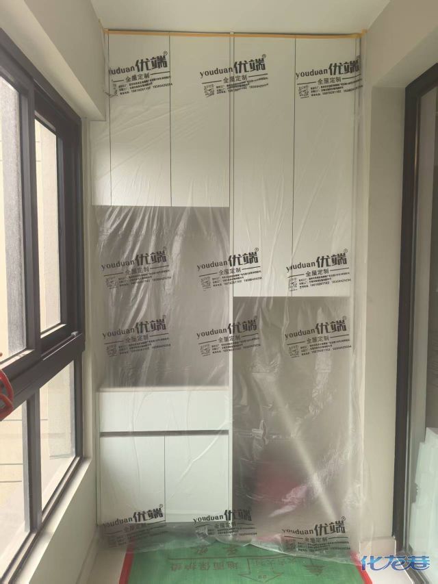 安裝完成的柜子都用塑料膜保護起來了