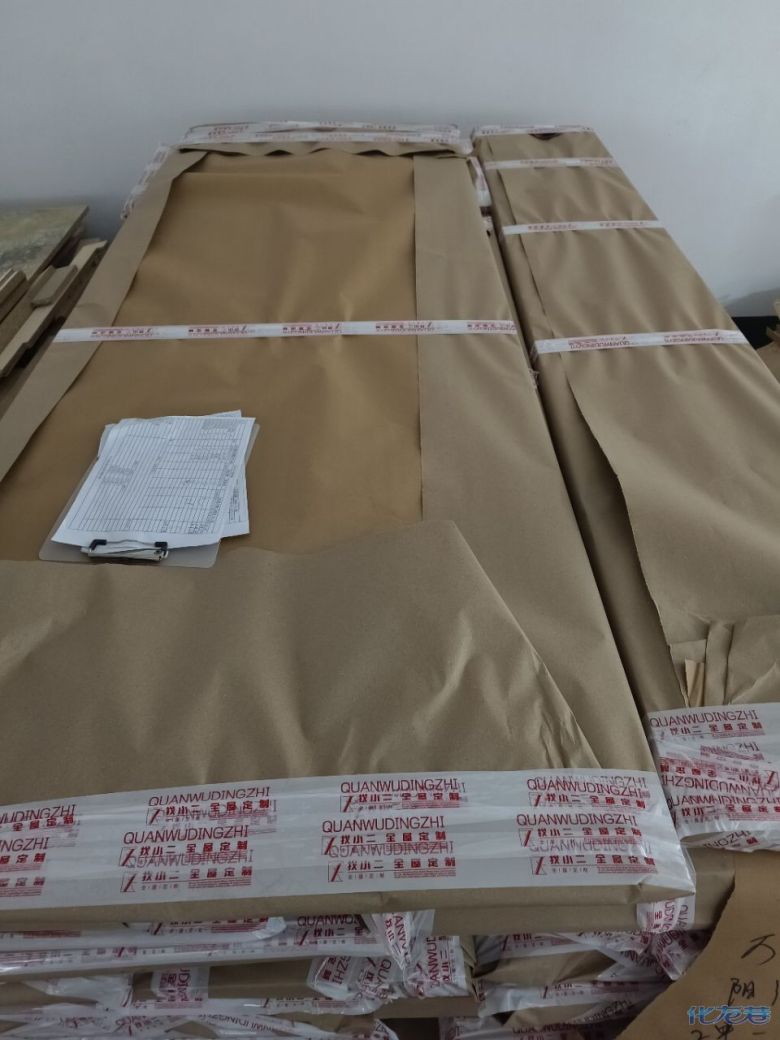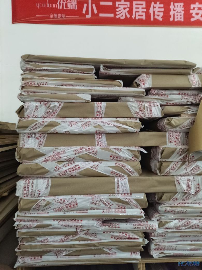 進(jìn)入打包環(huán)節(jié),我家柜子每塊板都是整個(gè)打包起來(lái)的,以防運(yùn)輸過(guò)程中劃傷或者磕碰到,跟板材下面墊板一個(gè)原理哦!重新訂板會(huì)存在色差,這是重點(diǎn),圈起來(lái)必考。全部打包好就可以聯(lián)系客戶送貨咯!