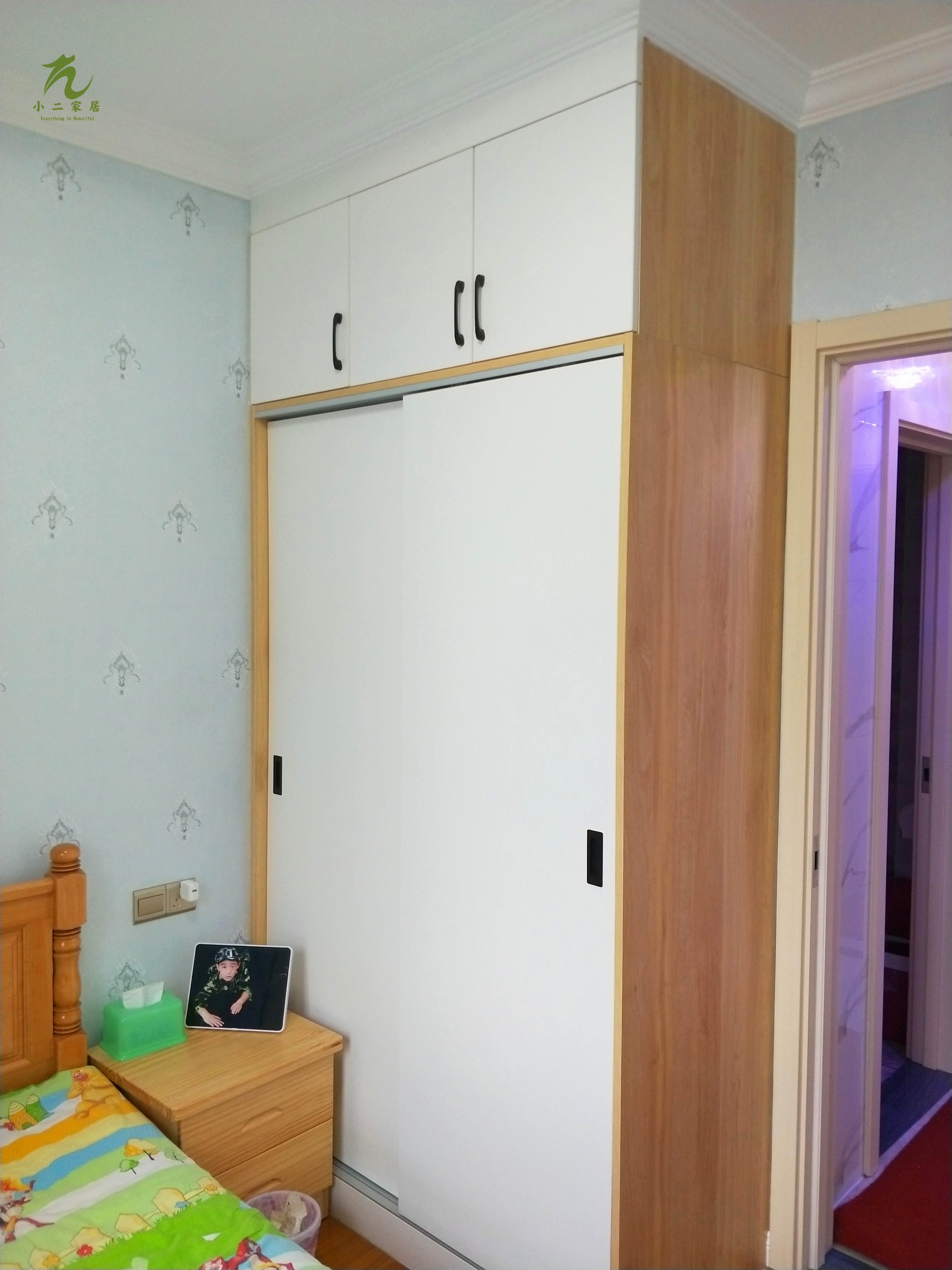 效果圖來(lái)啦,主家已經(jīng)入住了一段時(shí)間了,廚房是白色的晶鋼門(mén)櫥柜~很好看,看著很干凈~(yú)其他白色和原木色的柜子