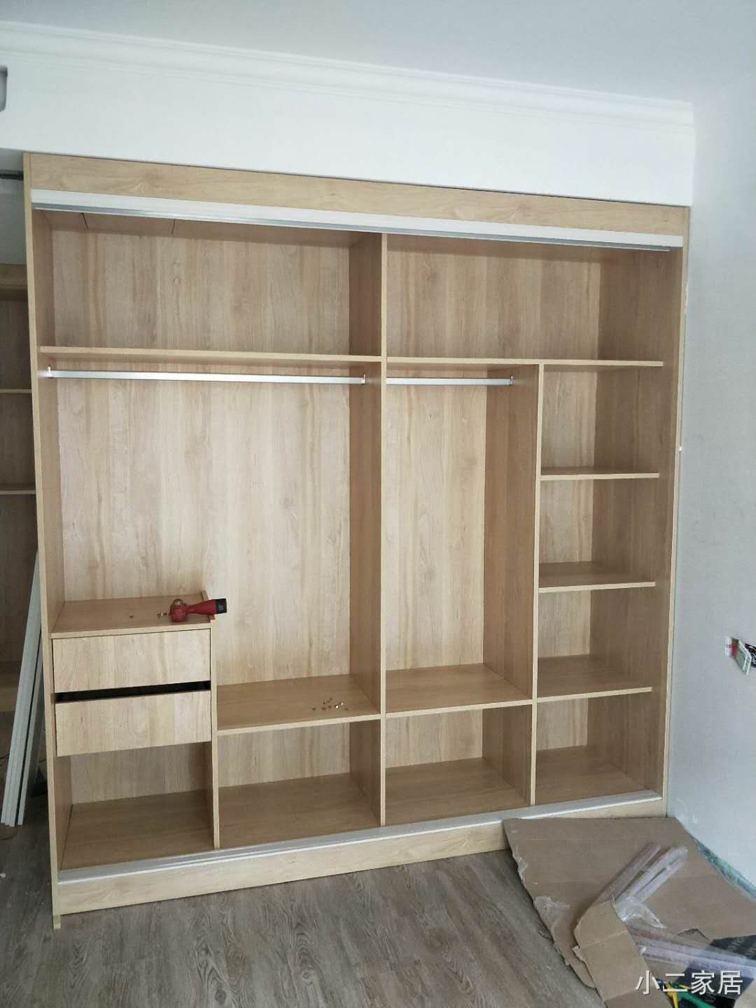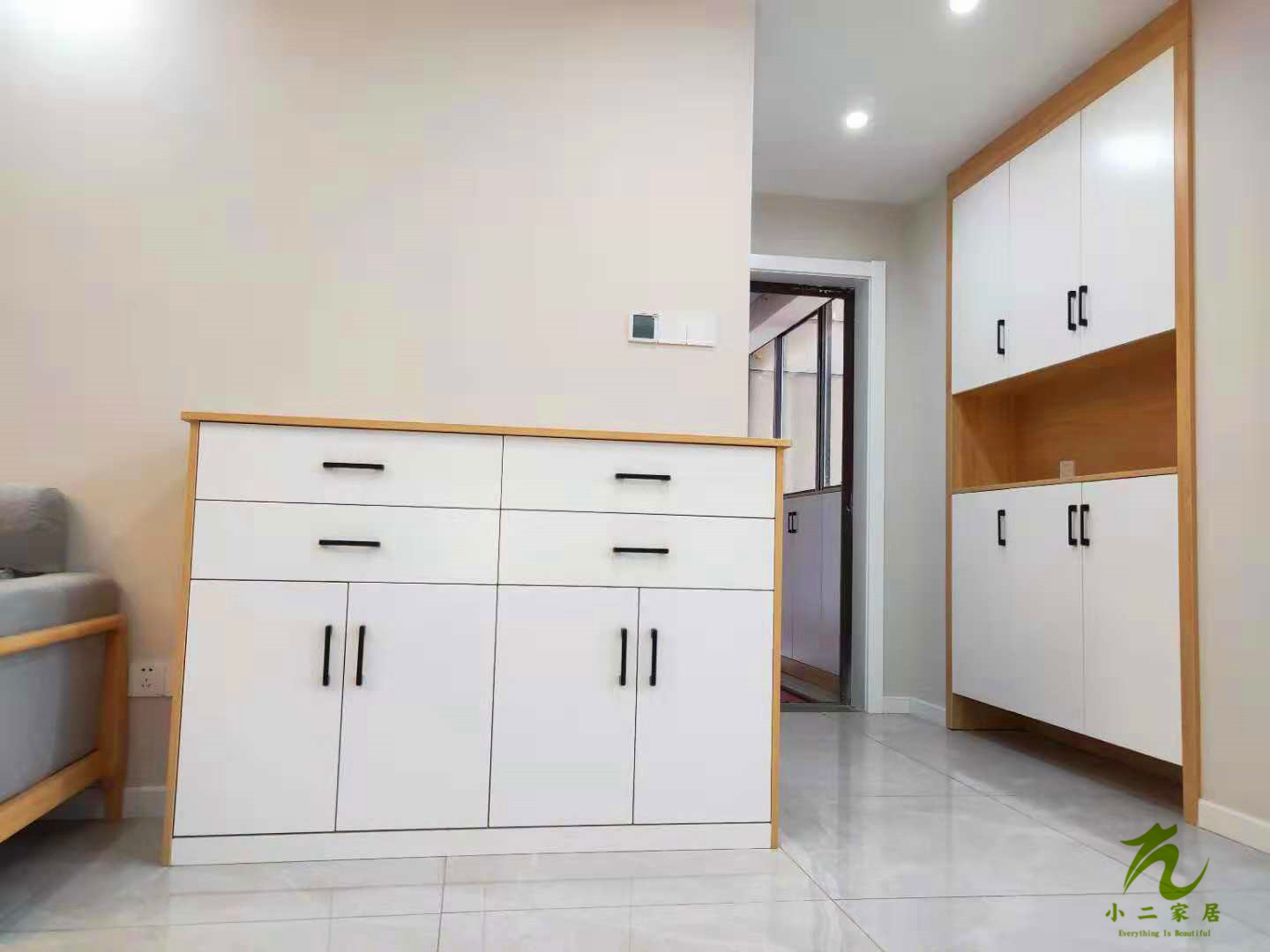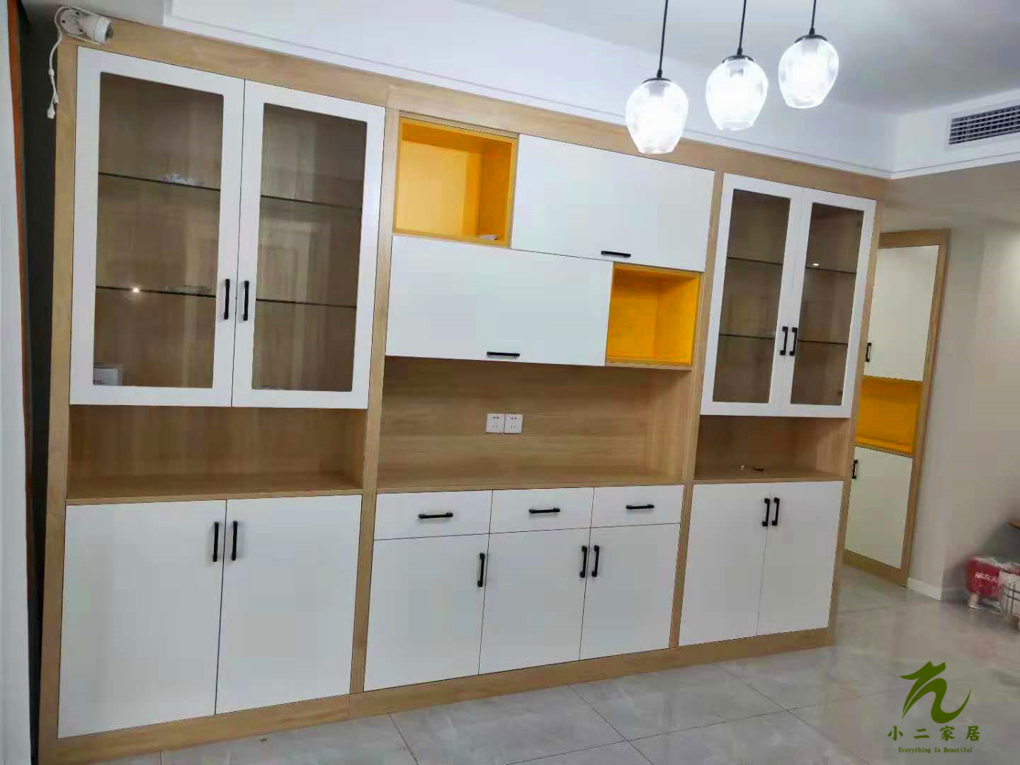 半成品的圖先放上來,這柜子的拼色是不是很驚艷呢!原木色加白色也是很經(jīng)典了