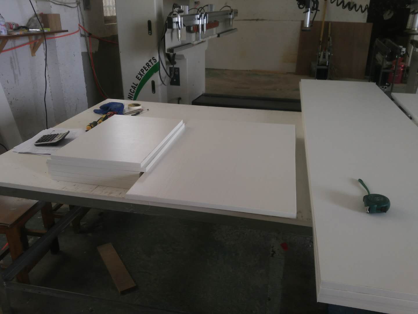抽屜板準(zhǔn)備封邊了,酒柜的板打孔中。