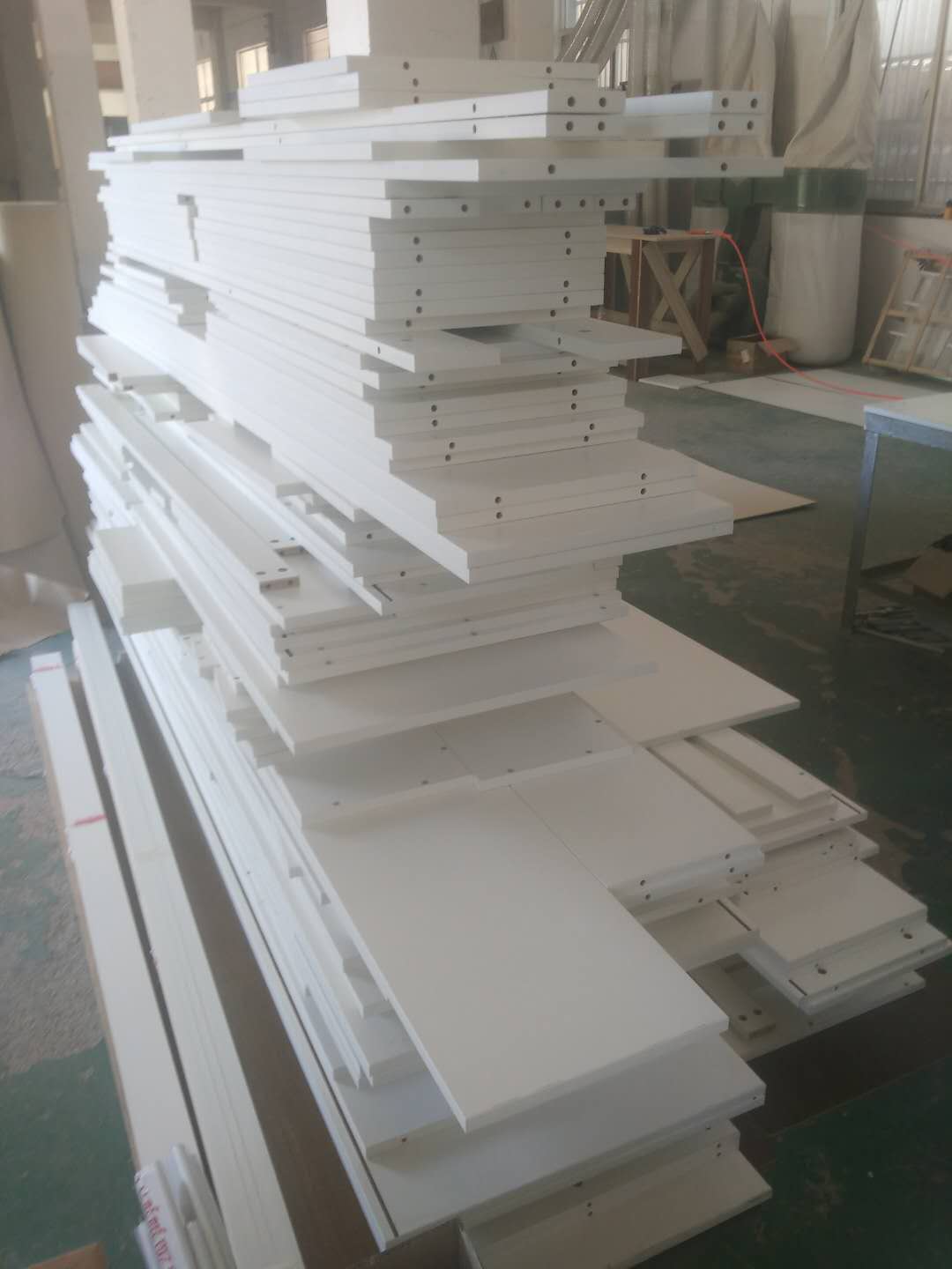 開始制作,衣柜板打孔中~