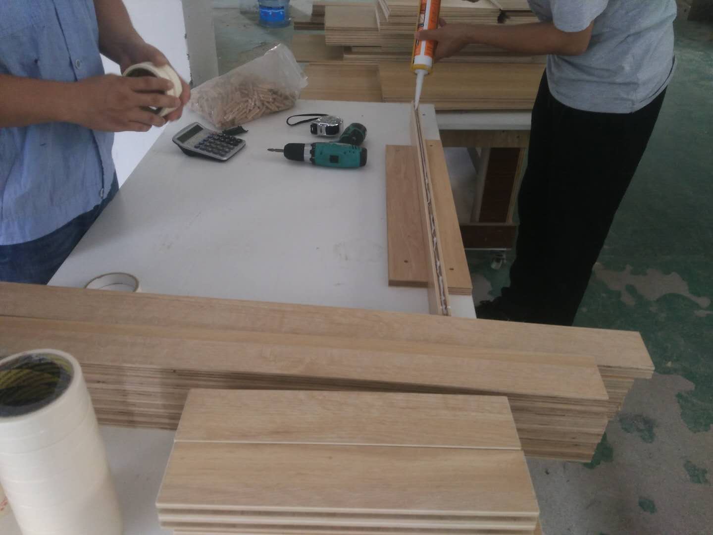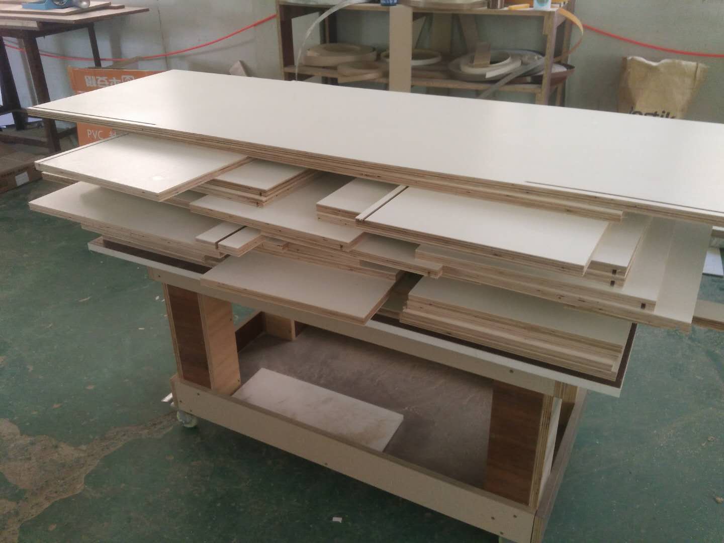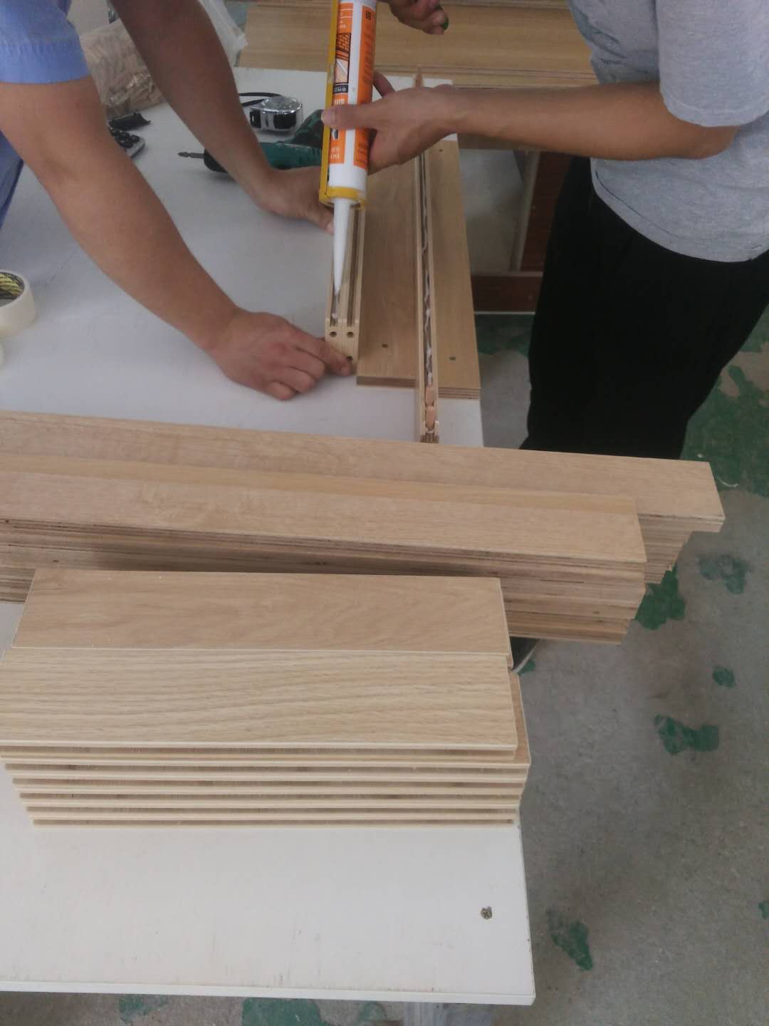 榻榻米儲(chǔ)物柜板制作中