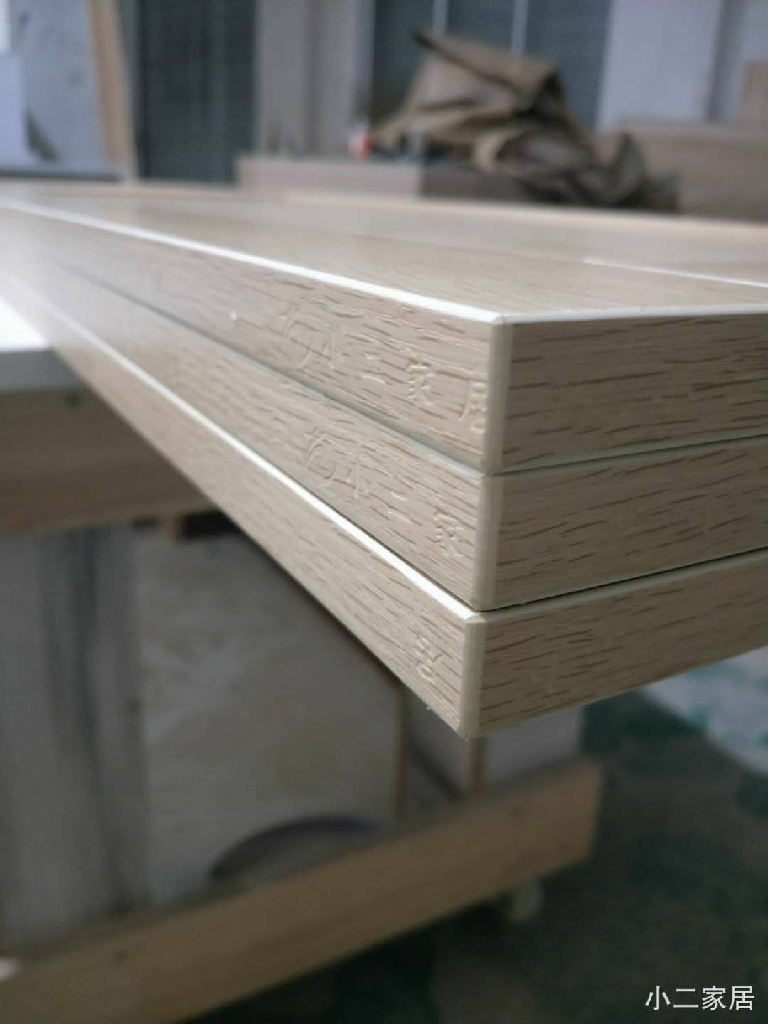 衣柜櫥柜的實(shí)木多層板~平安樹藍(lán)光防偽,封邊條上印有小二家居的logo