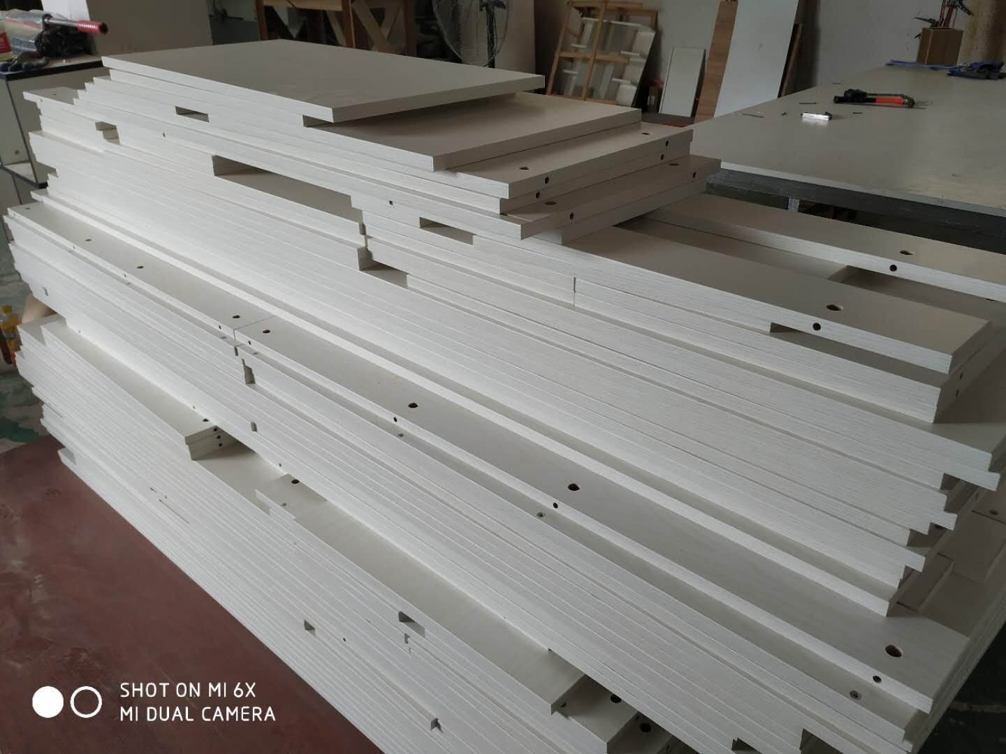 開始制作!衣柜板打孔中