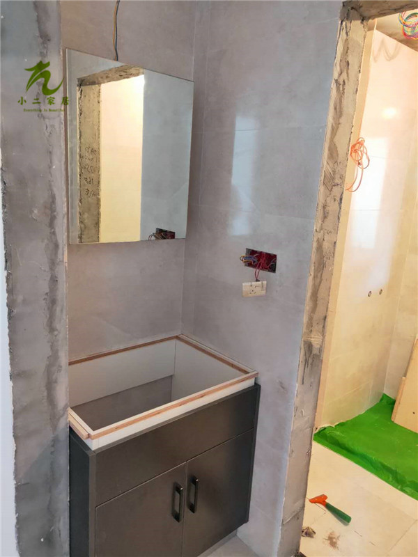 已封邊,陽臺(tái)洗衣柜,廚房吊柜的板打孔中,平安樹板材高級(jí)藍(lán)光防偽哦!
