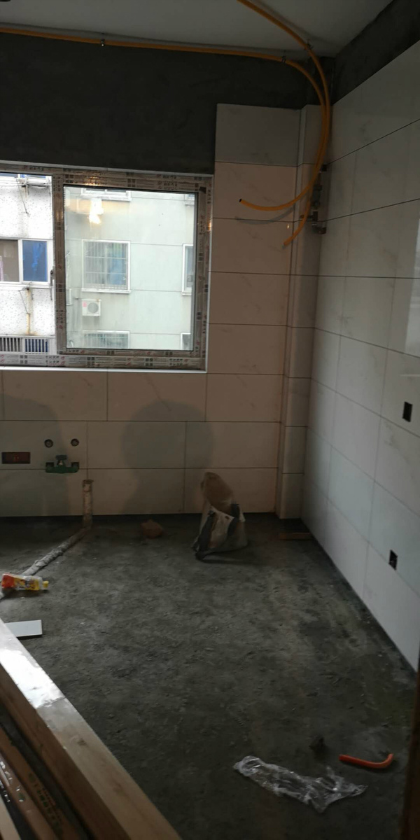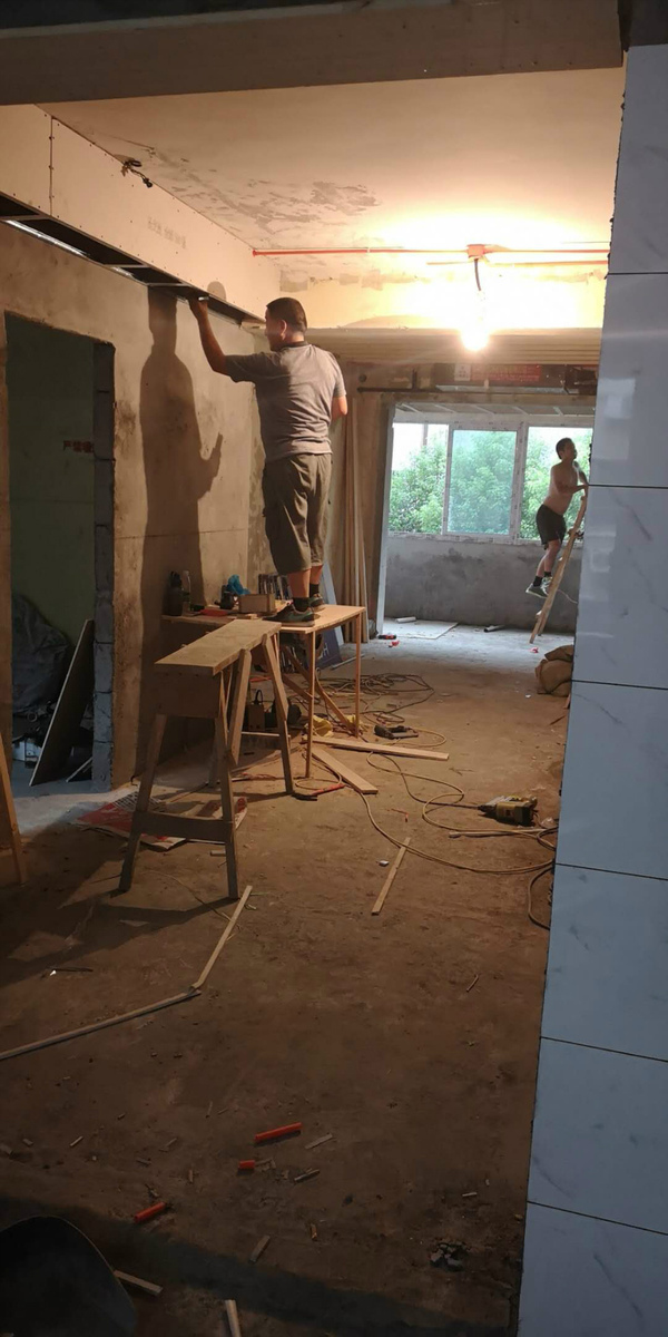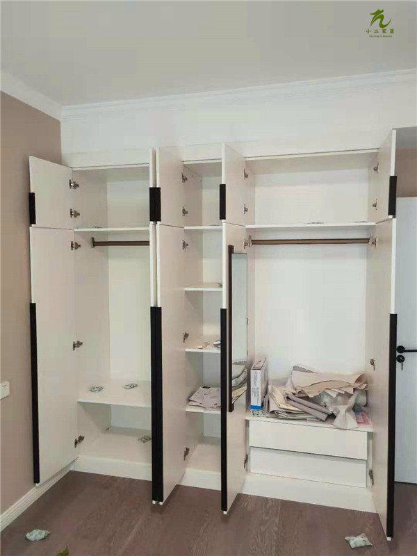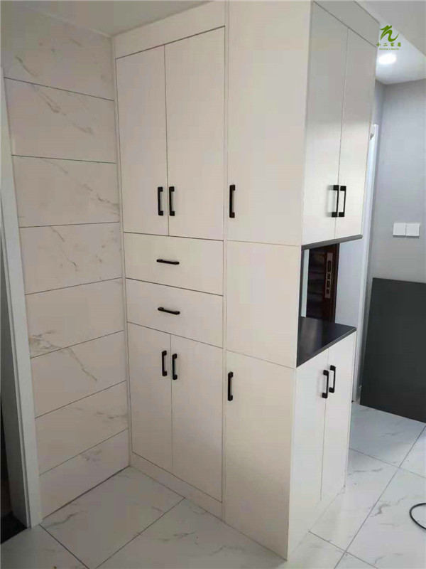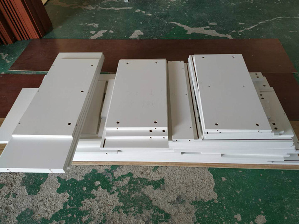 陽(yáng)臺(tái)洗衣柜,櫥柜板已經(jīng)打好孔啦,兒童房衣柜打孔中。