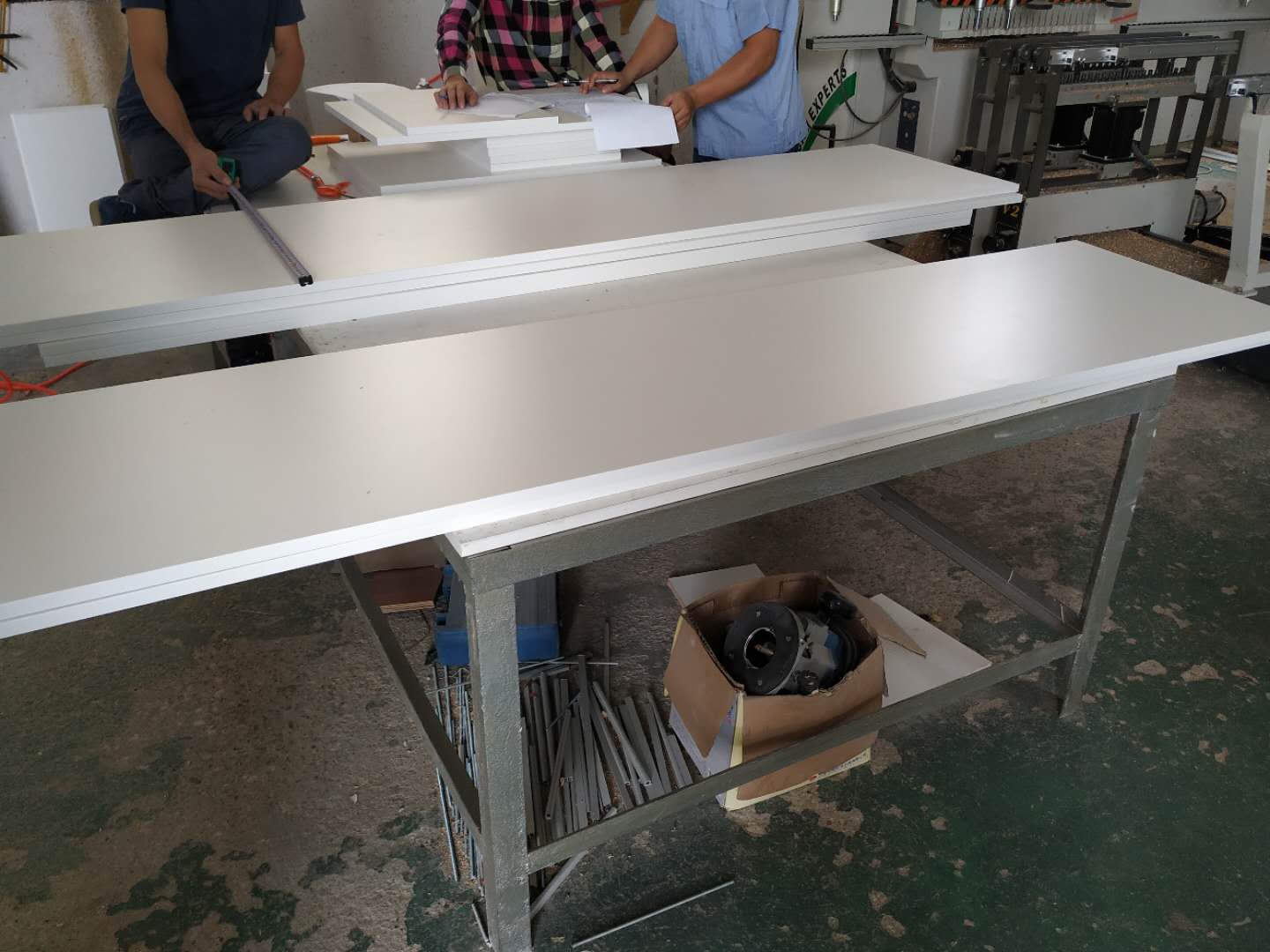 開(kāi)始制作啦,櫥柜吊柜板打孔中,使用暖白色平安樹實(shí)木多層板制作,板材有平安樹高級(jí)防偽標(biāo)志哦!