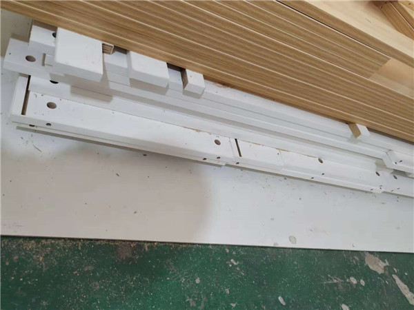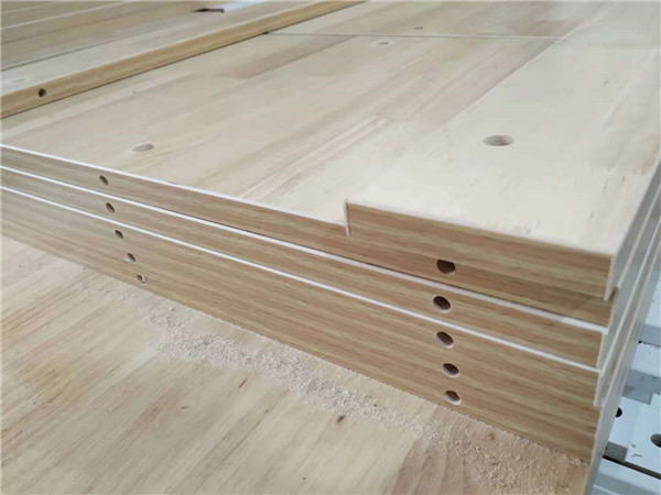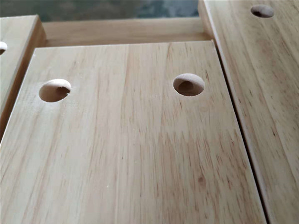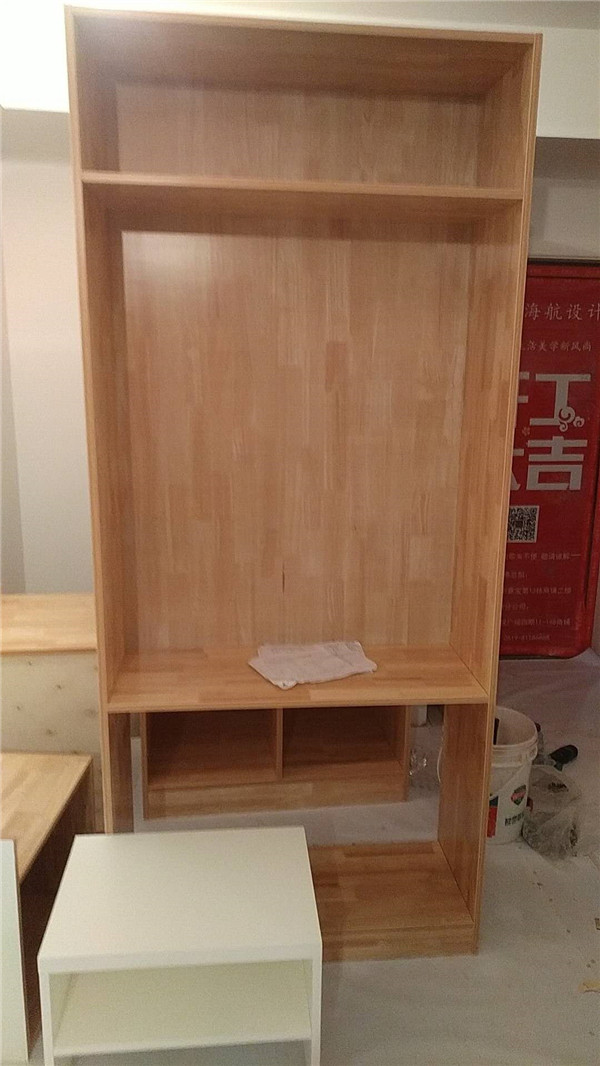 小房間高柜板打孔中,活動(dòng)層板的板材制作中~圖5是已經(jīng)封好邊抽屜抽面的板材,柜體板材都是使用橡膠指接木制作,紋理優(yōu)美,質(zhì)地均勻。
