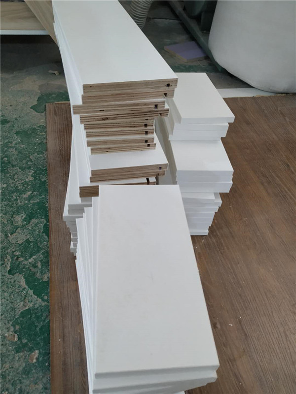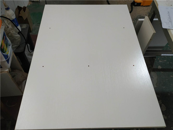 圖4圖5是待封邊的柜體側(cè)板和底板,板材使用平安樹暖白色實木多層板制作。