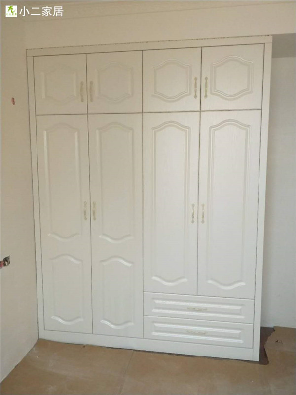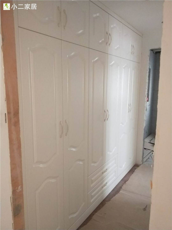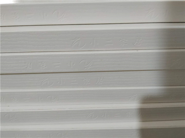 圖2圖3是已經(jīng)封好邊的櫥柜和衣柜板材,封邊條上印有小二家居的logo~待打孔,