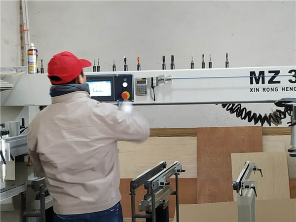 開始制作啦,衣柜和衣帽間的板材已經(jīng)封好邊啦,今天開始打孔~打孔使用專門的機器打孔,板材使用平安樹仿古布紋色實木多層板制作。