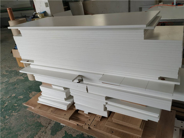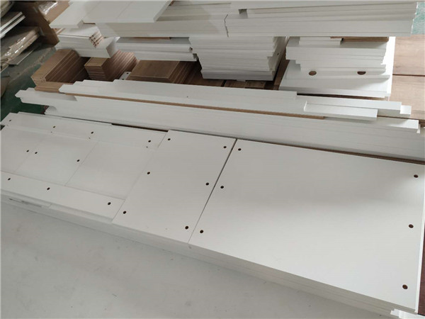 仿古布紋色的柜體板材已經(jīng)打包好啦,暖白色的柜門板材也已經(jīng)打好孔了,大圓孔是用來裝鉸鏈的,其他板材也做得差不多啦