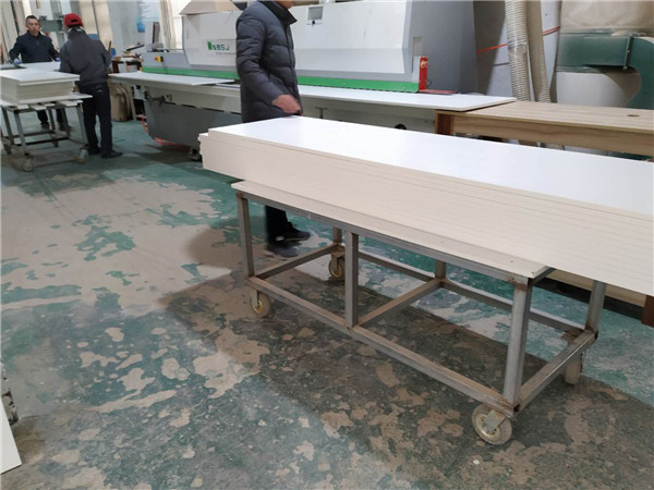 昨天的內(nèi)衛(wèi)浴柜和外衛(wèi)浴柜的板材打孔中,圖5是榻榻米板材待封邊,圖6圖7是酒柜板材裁板中。