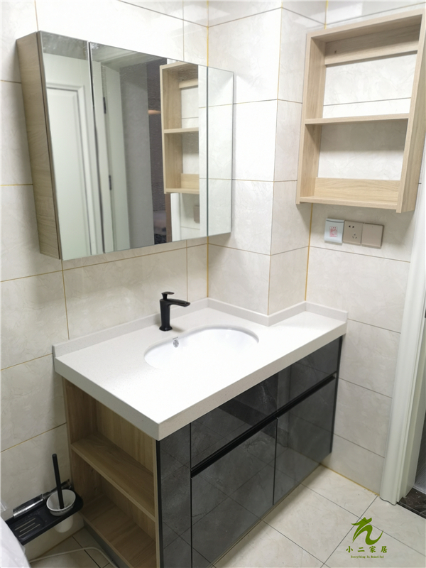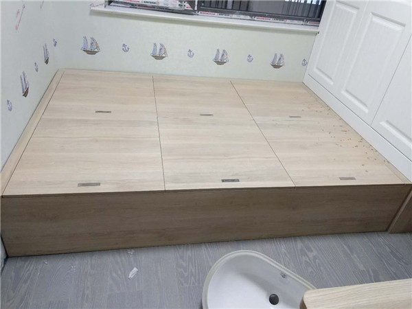 榻榻米板材使用平安樹富貴灰橡色實(shí)木多層板制作,酒柜板材使用平安樹小花胡桃色實(shí)木多層板制作。