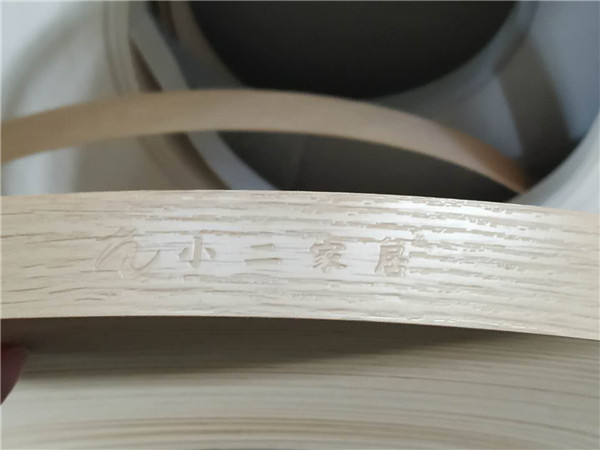封邊使用專門的機器封邊哦,機器溫度到達200℃就可以封邊啦,現(xiàn)在在預(yù)熱中,封邊使用進口法國波士熱熔顆粒膠,封邊條上印有小二家居的logo。
