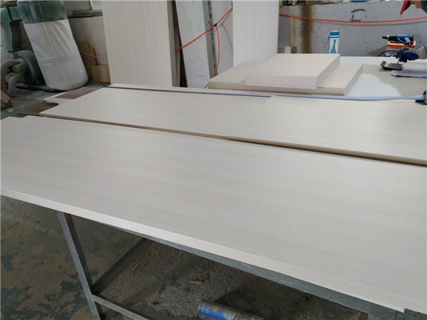 開始制作啦,櫥柜板材已經(jīng)裁好板了,一會就可以封邊,板材使用平安樹清水橡木色實木多層板制作,