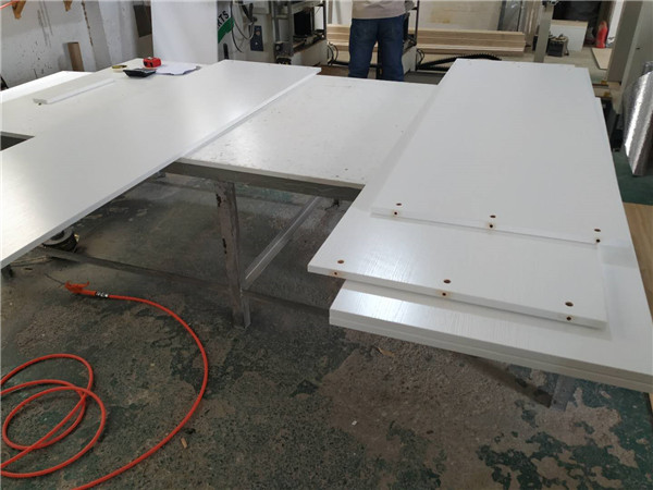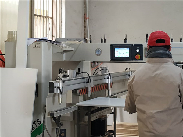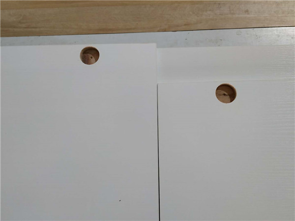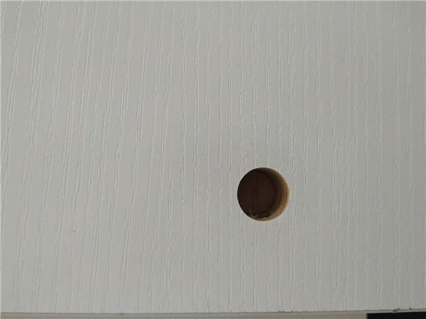 櫥柜板材已經封好邊打好孔啦,打孔使用專門的機器打孔,孔洞大小可調節(jié),打出來的孔圓潤不爆邊。