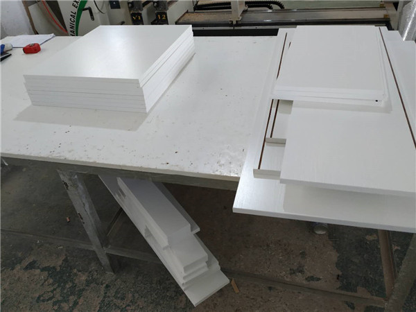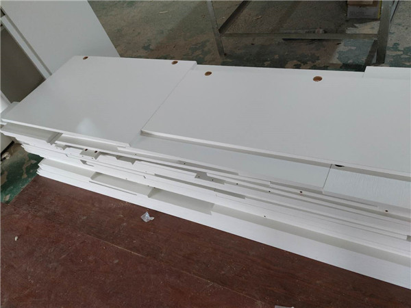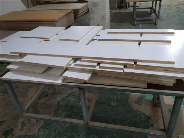 抽屜抽面的板材還有一部分需要封邊,封邊條上印有小二家居的logo,飄窗板材待打孔,所有板材都使用平安樹實木多層板制作~