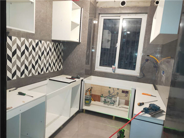 柜體已經拼裝好啦,今天應該可以裝門板了,業(yè)主家的廚房裝修的很漂亮,,期待裝修完的效果!