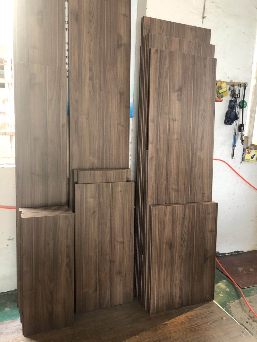 開始制作啦,衣柜裁板中,板材使用平安樹實木多層板制作,有高級藍光防偽標識。