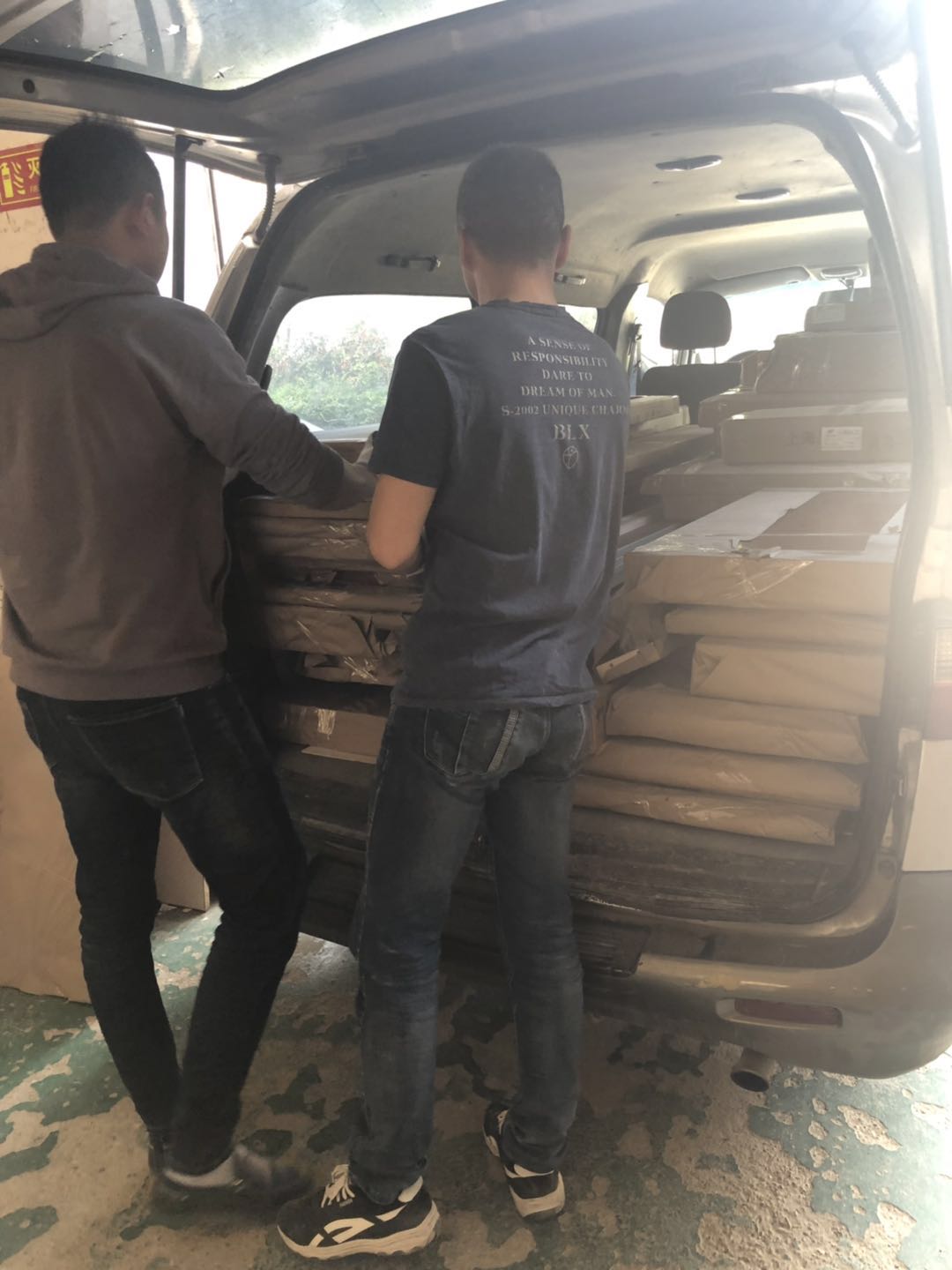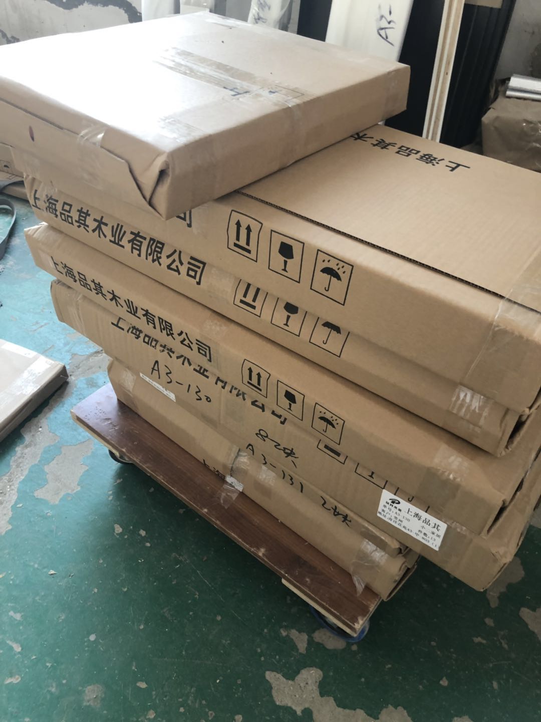 所有的板材已打包好,下午就去送貨了,天氣太熱師傅們辛苦了