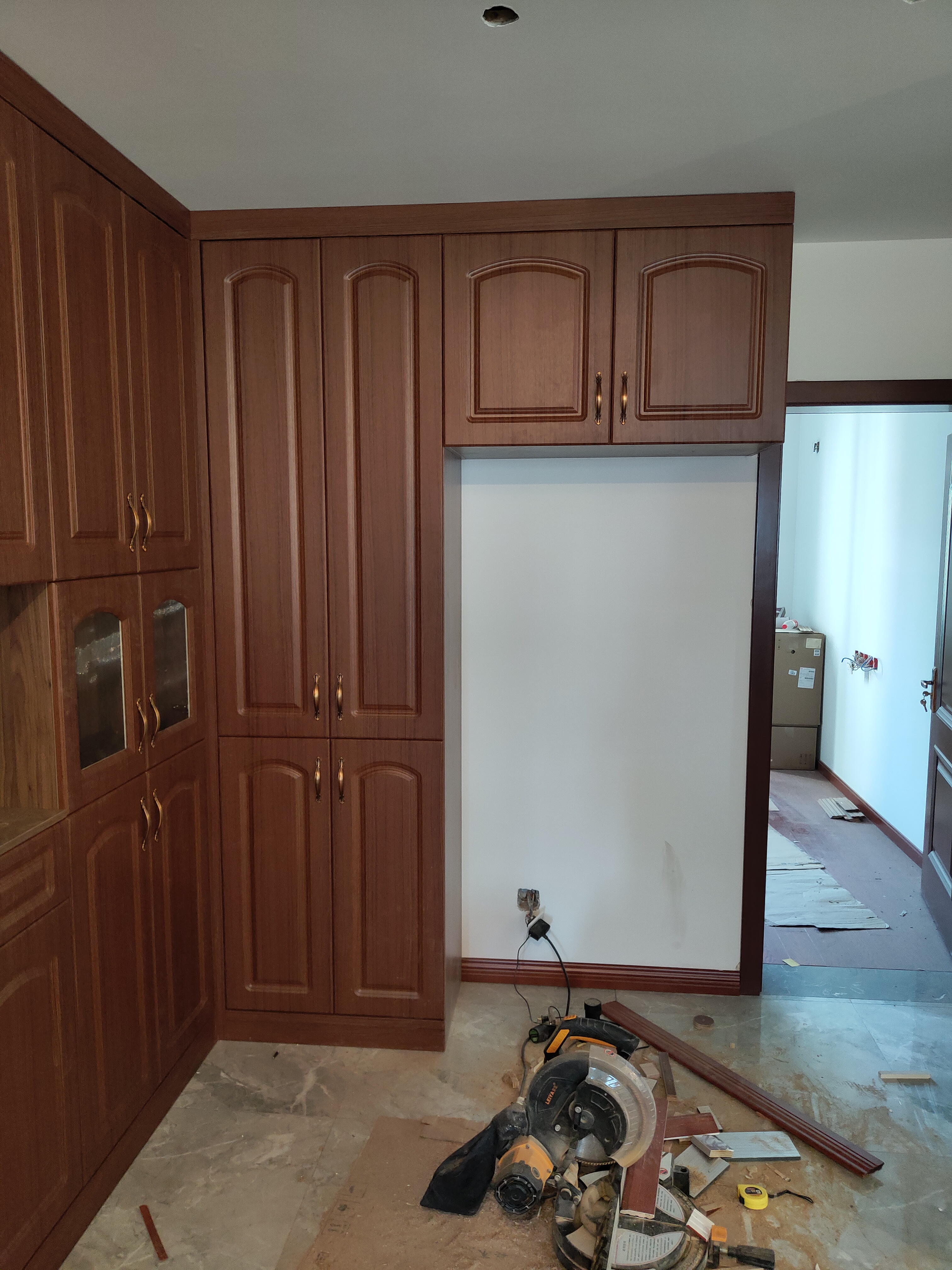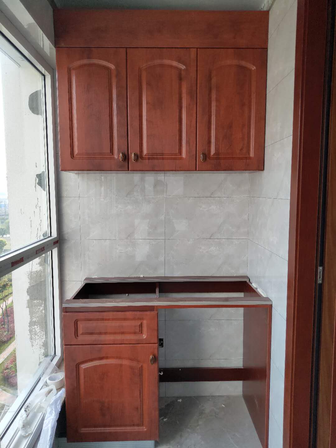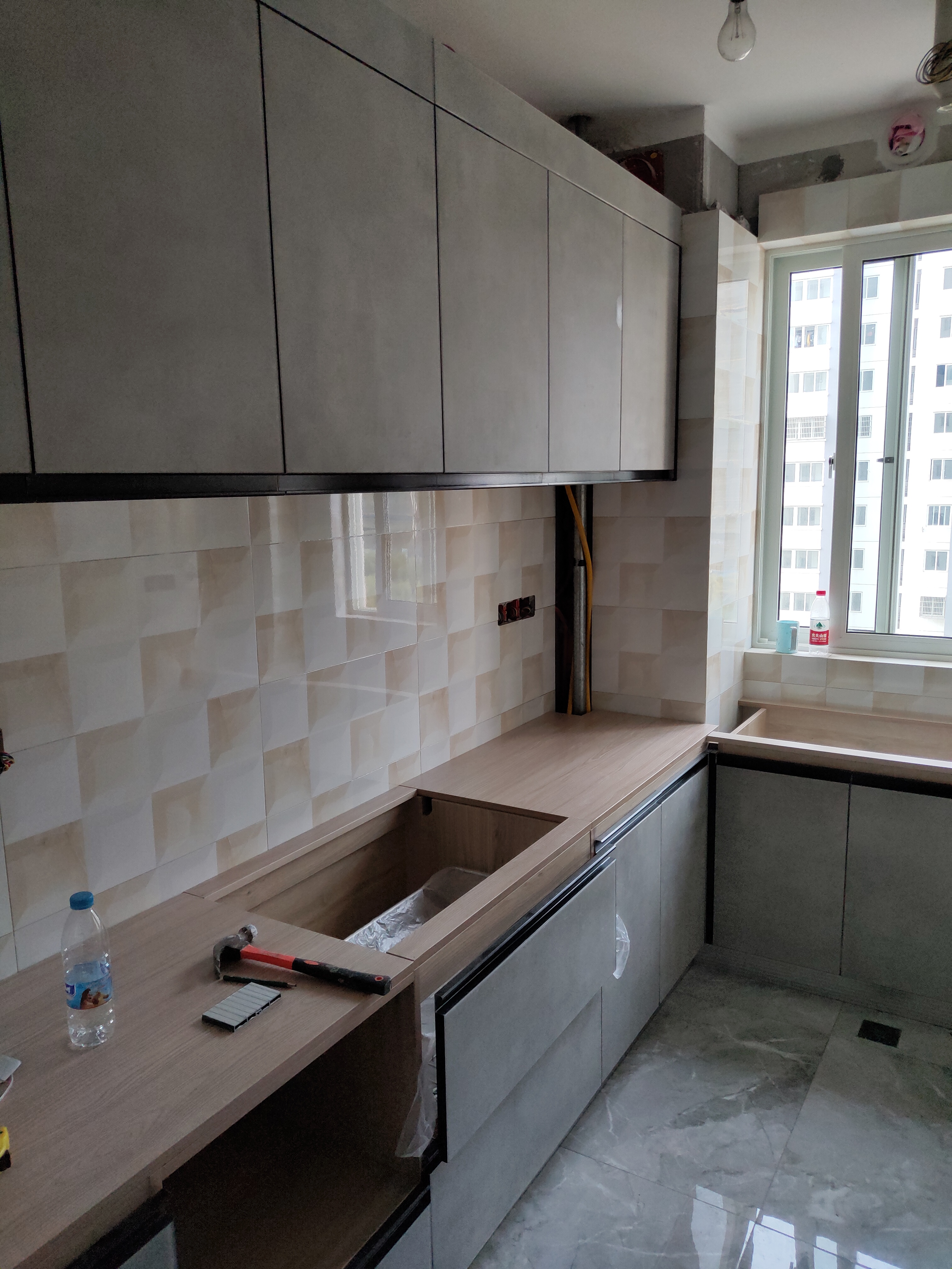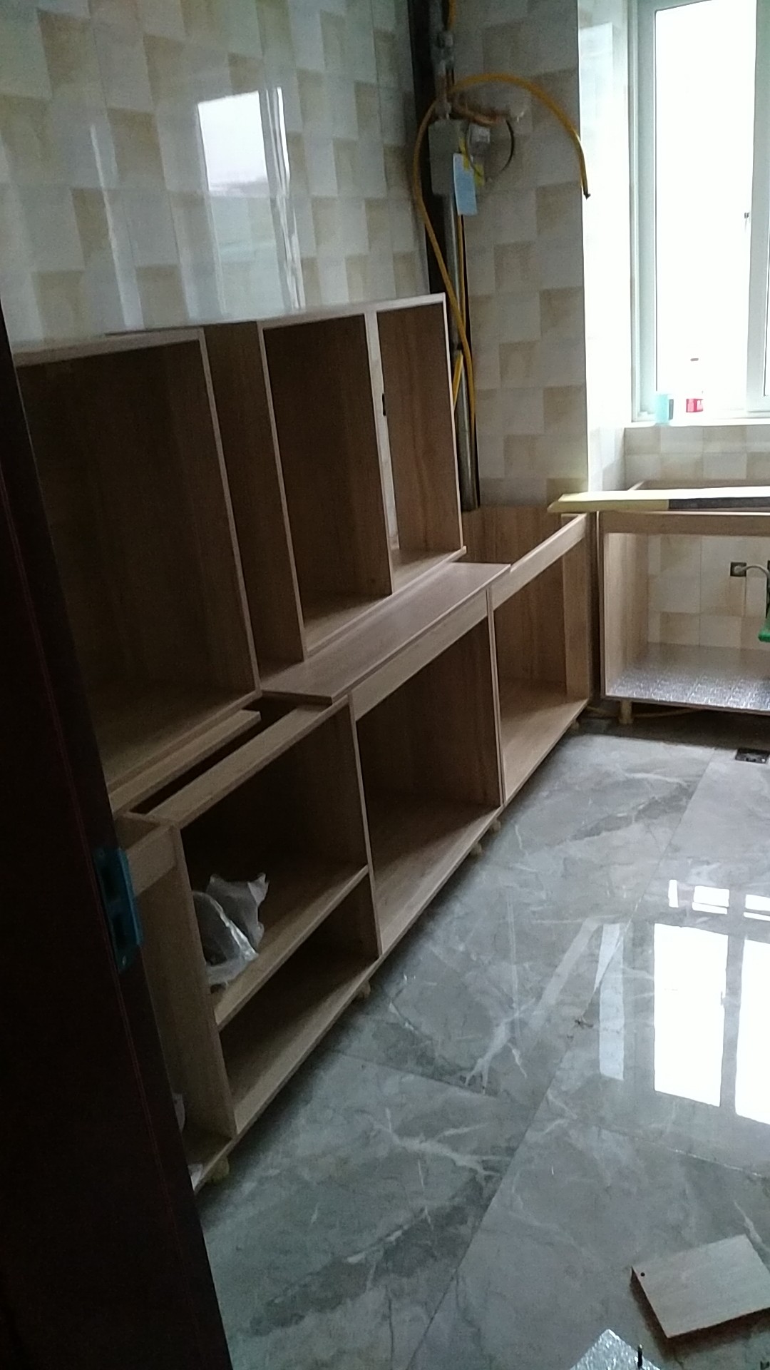 柜子都已經裝好了,還差臺面,整體效果看著還不錯。