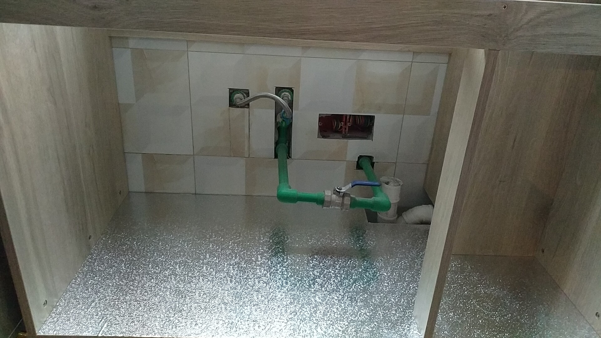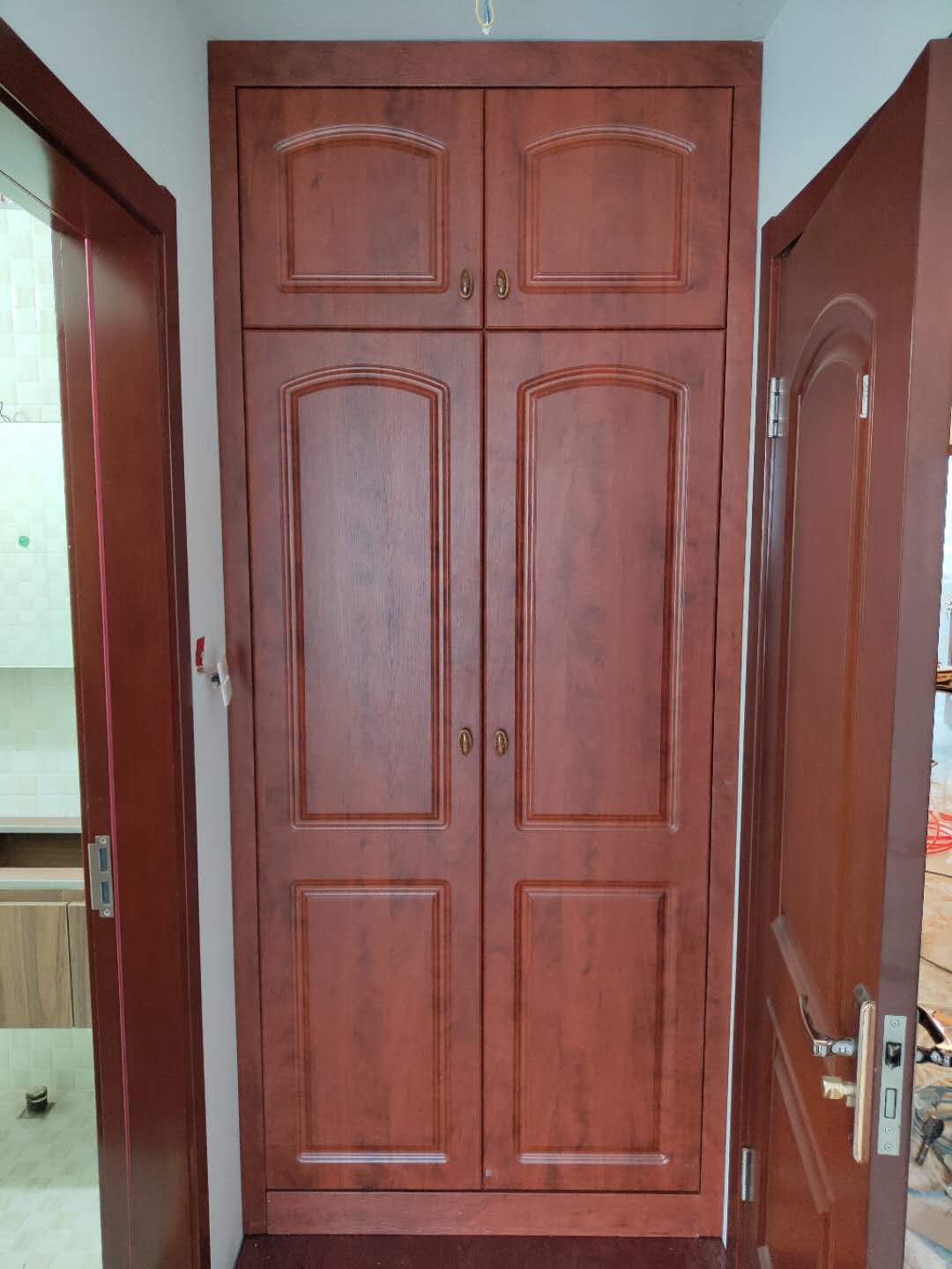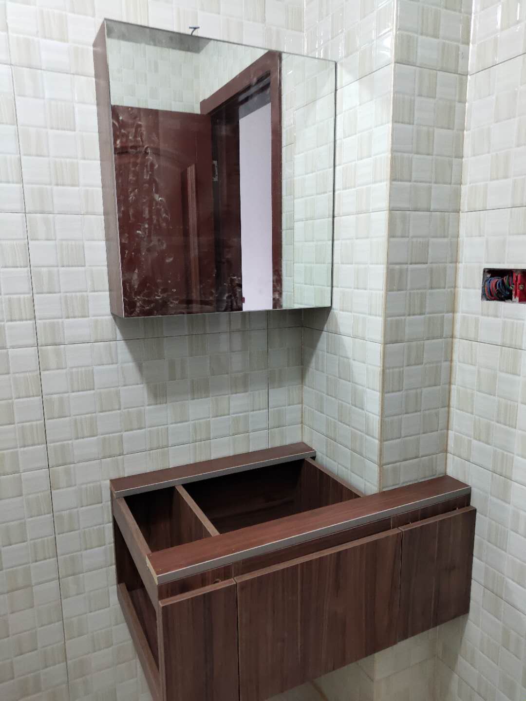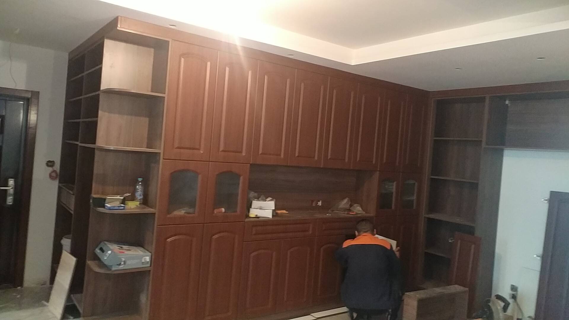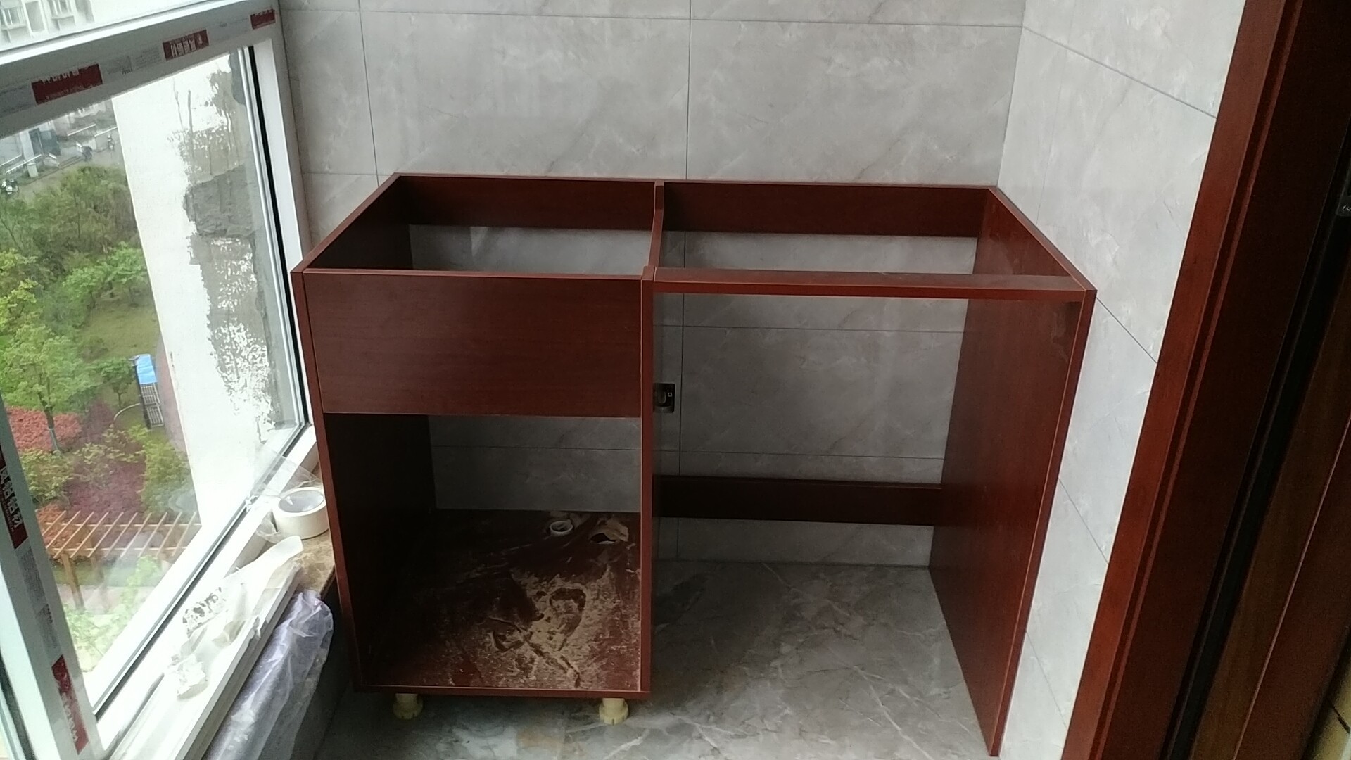 柜子都已經裝好了,還差臺面,整體效果看著還不錯。