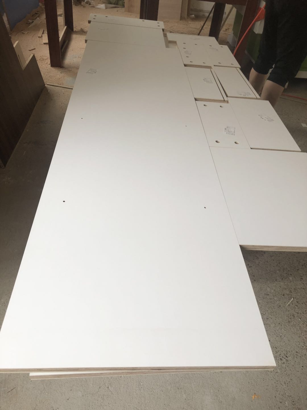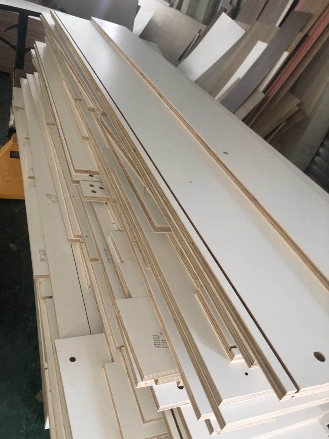 開板了,板材使用平安樹實(shí)木多層暖白色E0級(jí)制作,專業(yè)的設(shè)備裁板和打孔,沒(méi)有爆邊~