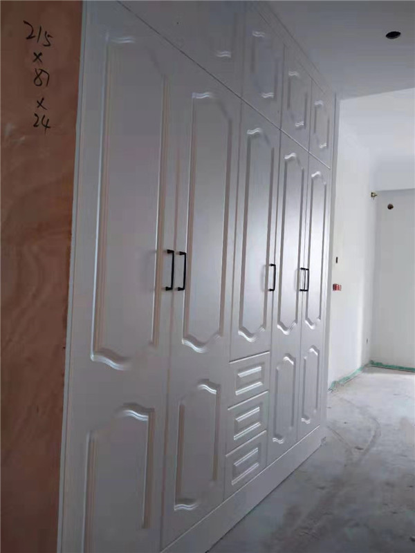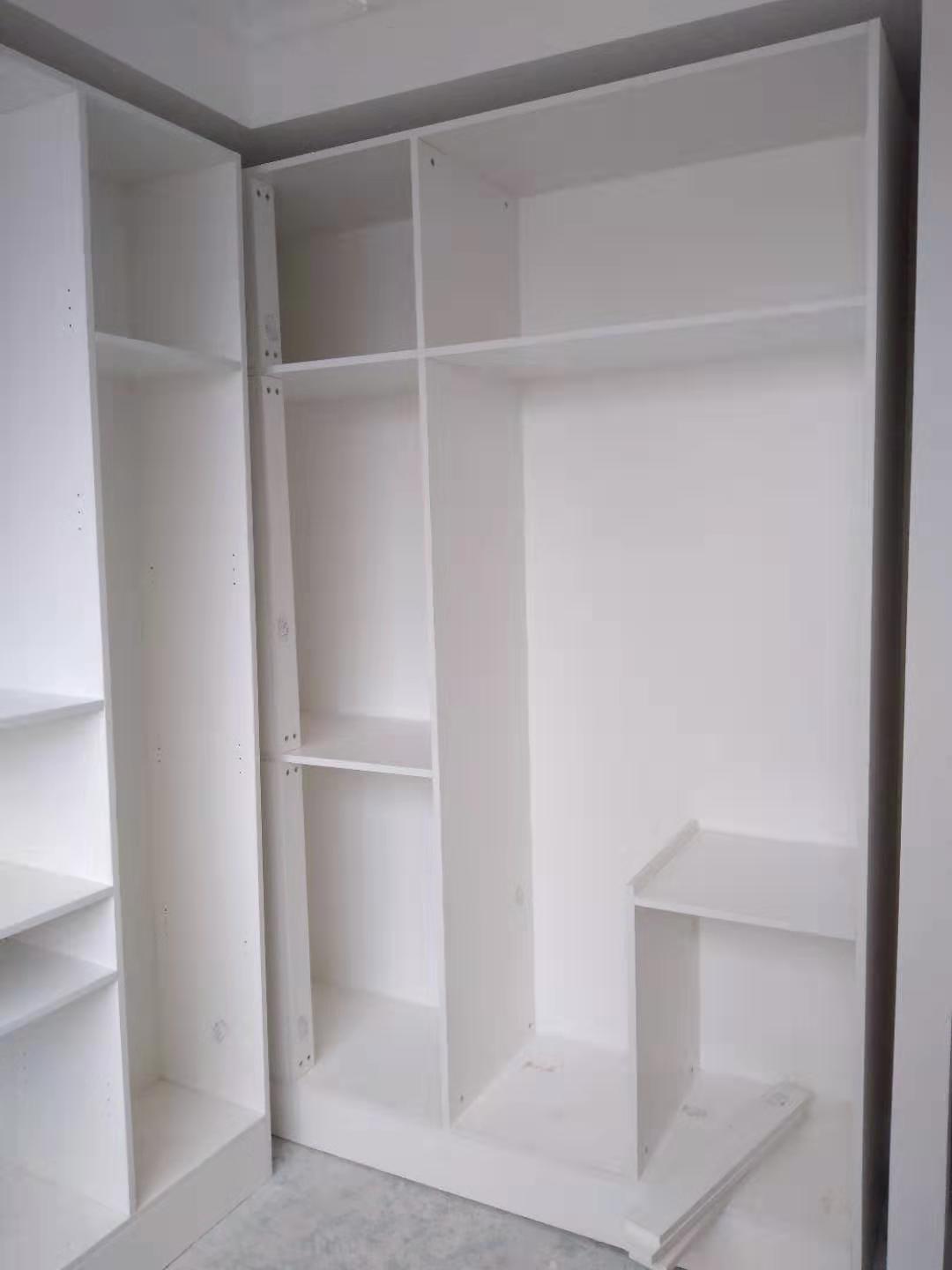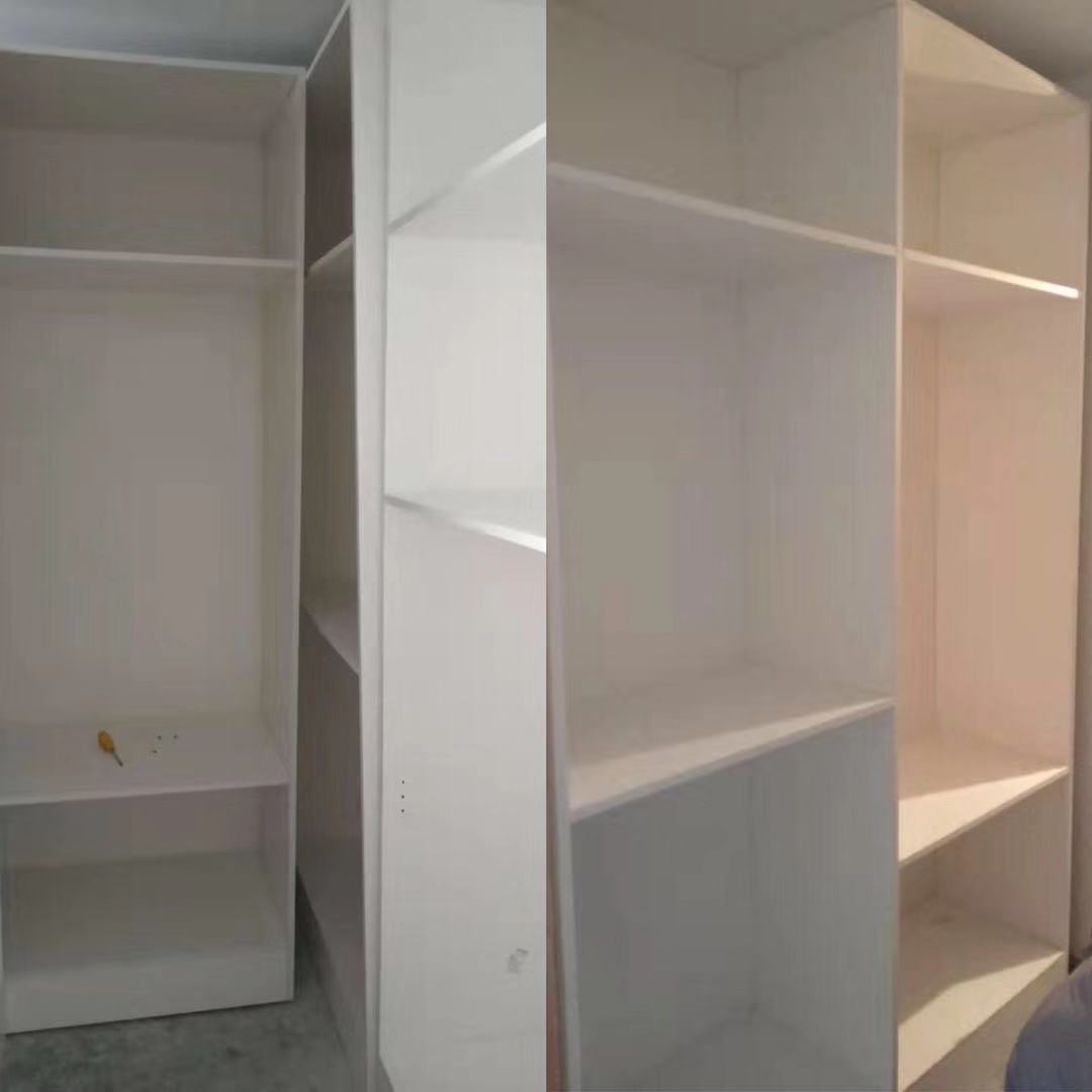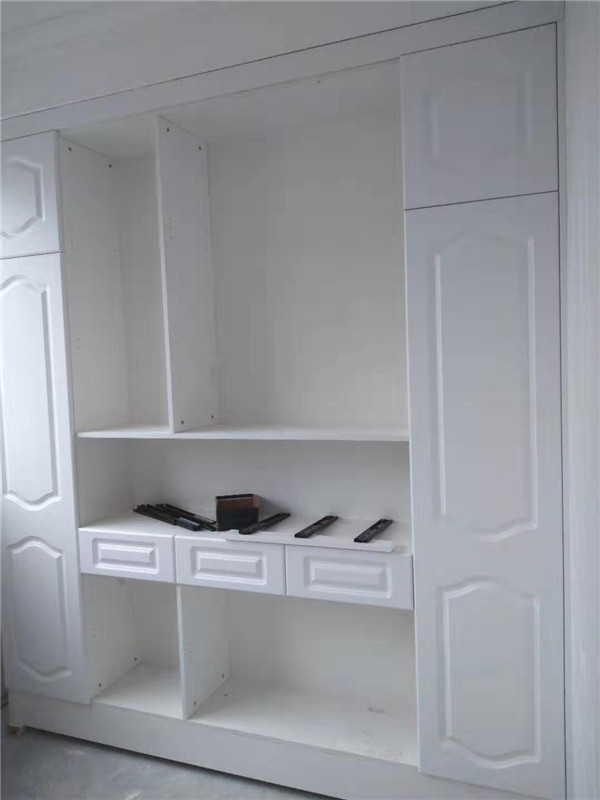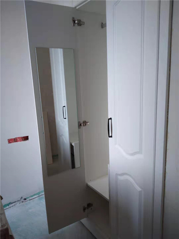 柜門基本安裝到位,接下來(lái)就是處理細(xì)節(jié)方面了,這就考驗(yàn)安裝師傅手藝的時(shí)候到了,