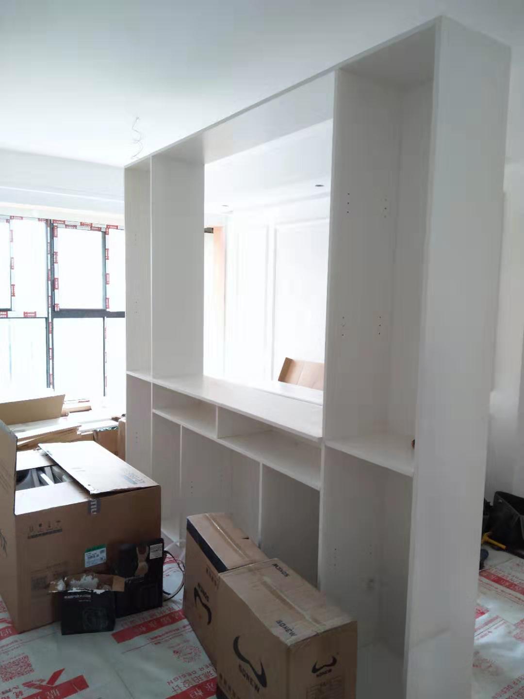 經(jīng)過(guò)兩天的努力,柜體基本裝的差不多了,業(yè)主大大家的柜子比較多,還要兩天才能裝完的,慢工出細(xì)活,耐心等待安裝后的效果吧。