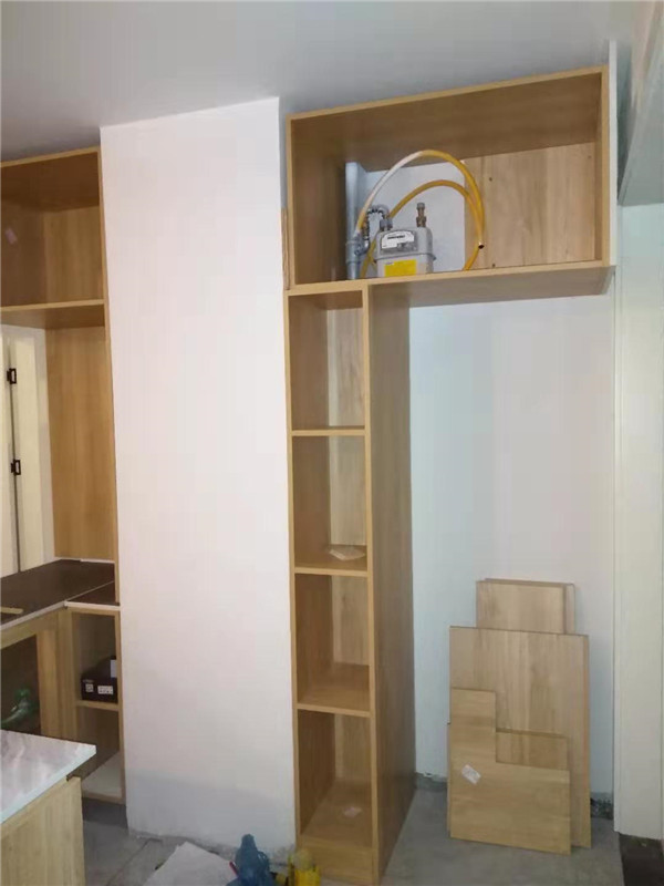 師傅兩天的時間基本把柜體拼裝完畢了,速度真快。這柜體顏色整體效果蠻洋氣的,耐看。一起期待最后的安裝效果吧!
