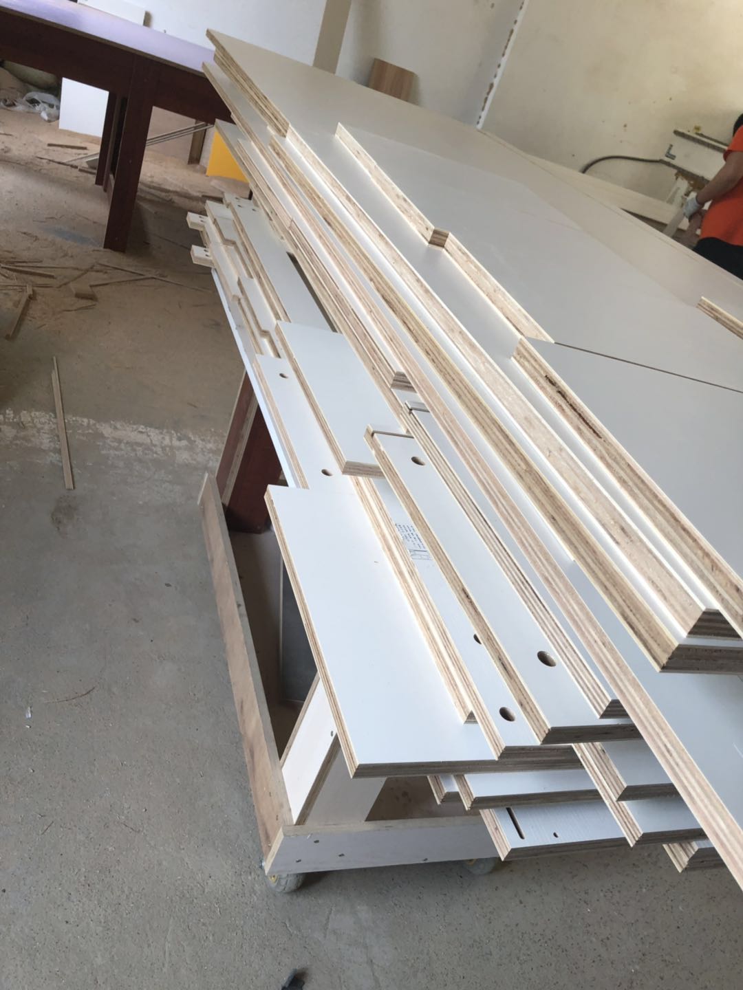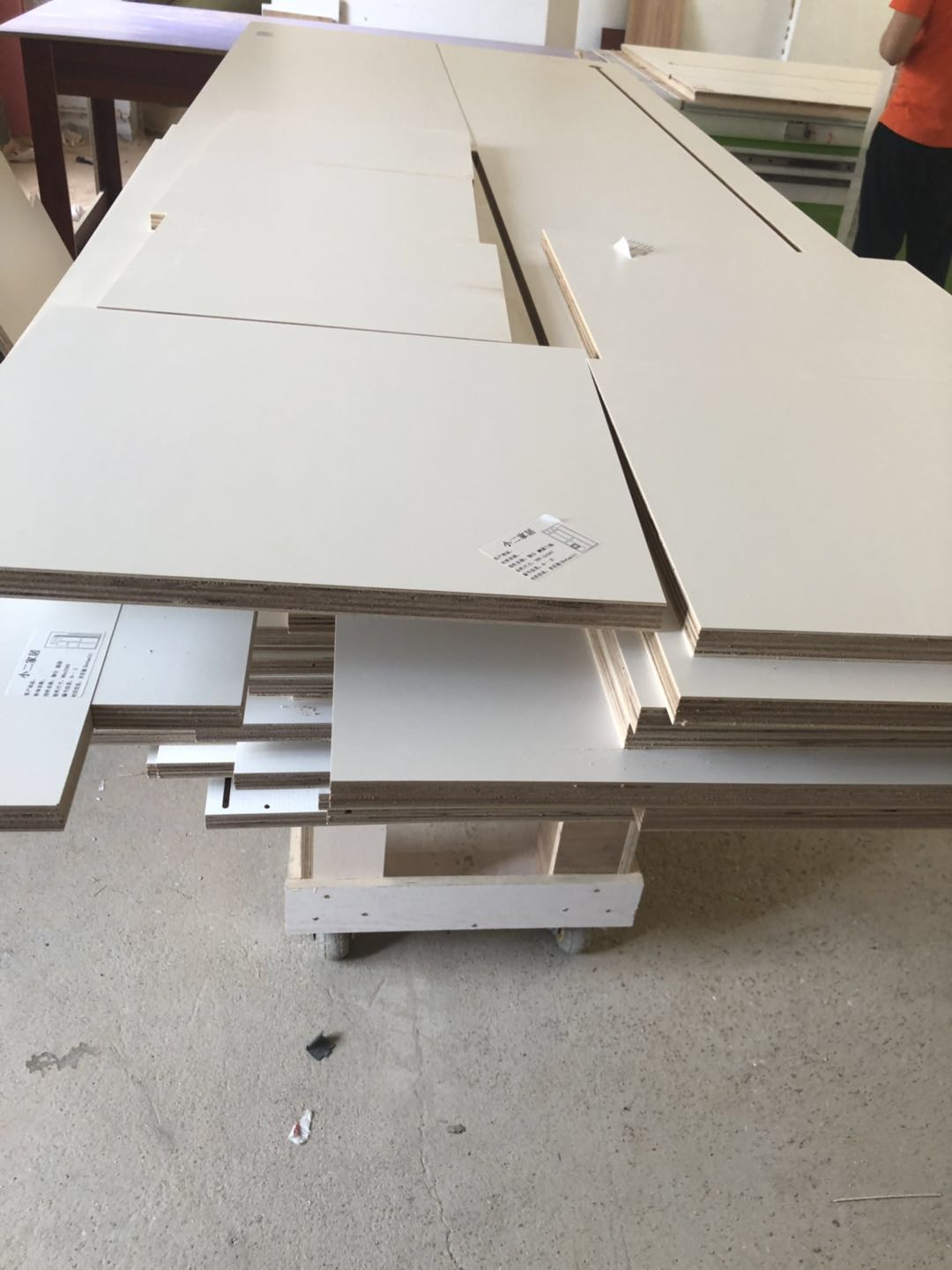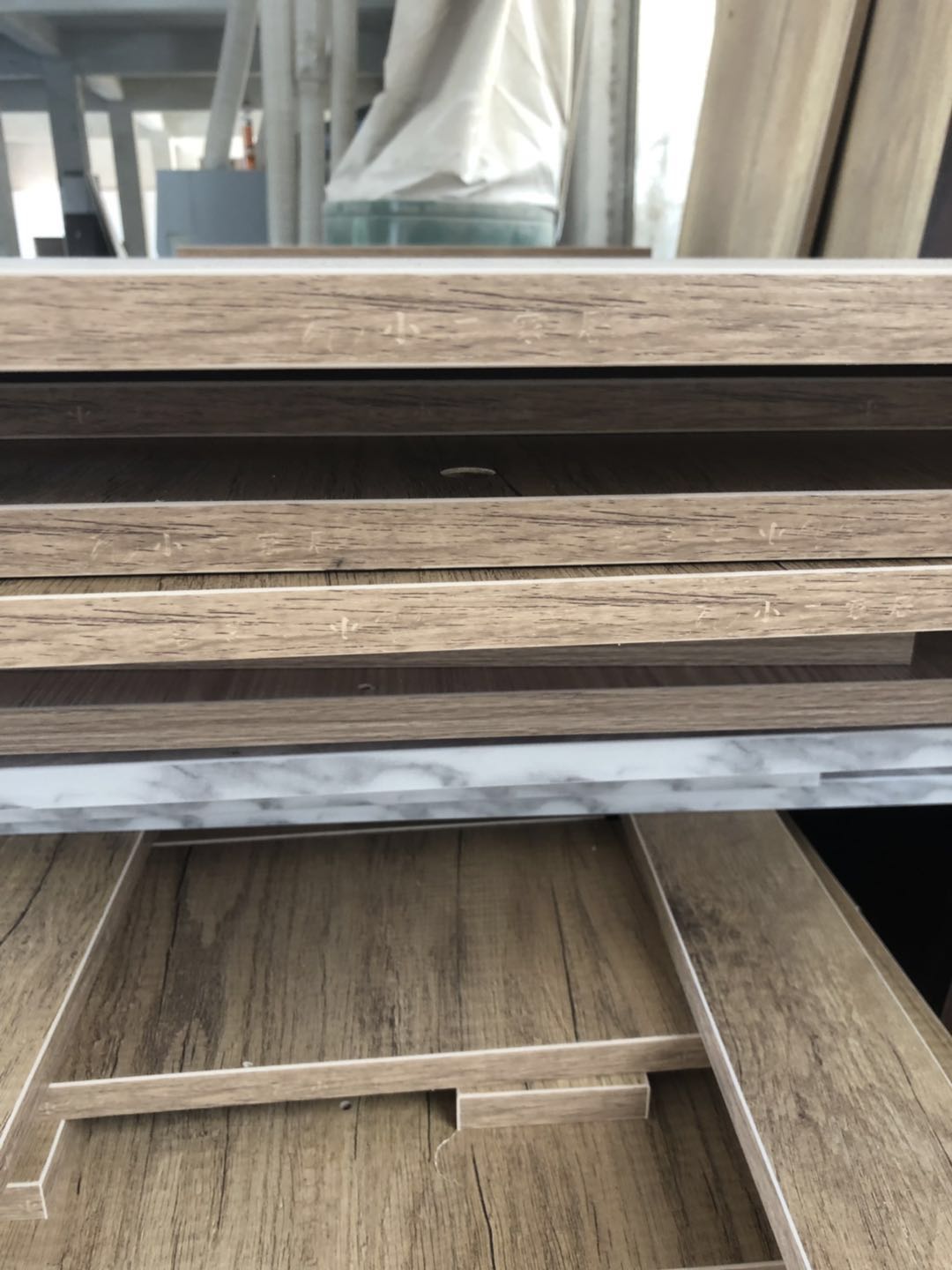圖1-4是門(mén)板,板材使用平安樹(shù)實(shí)木多層暖白色制作,圖5-9是柜體已經(jīng)封完邊了,采用法國(guó)波士熱熔顆粒膠,設(shè)備溫度達(dá)到200°C封出來(lái)的邊牢固,沒(méi)有爆邊~封邊條上有小二家居的Logo哦